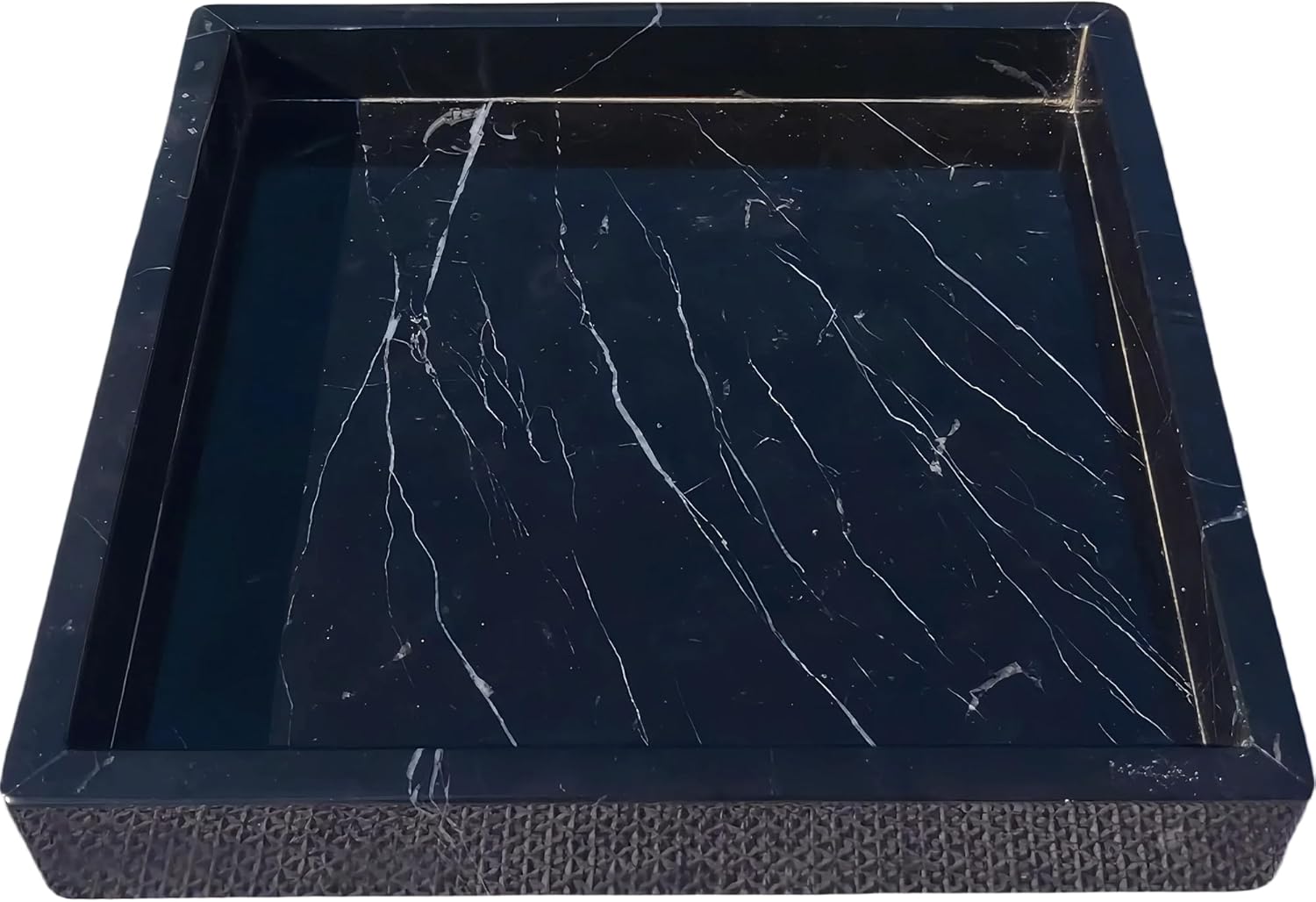 - VERSATILE MULTI-FUNCTIONAL DESIGN: Use this 8x8 marble vanity tray for bathroom essentials, as a jewelry organizer, or a catch-all tray for your entryway. Ideal for showcasing candles, perfumes, small plants, or as a coffee table tray for snacks and drinks.