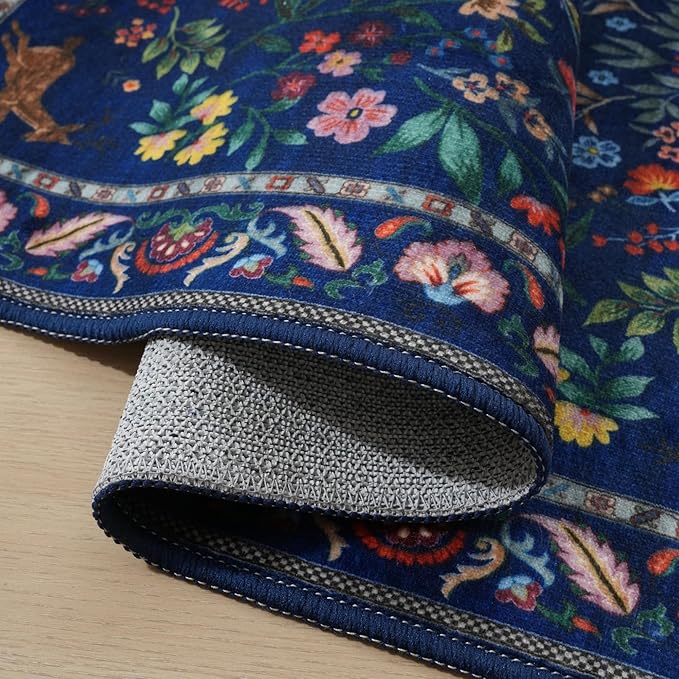 9x12 Area Rugs for Living Room Washable Rug Floral Non-Slip Large Rug for Living Room, Bedroom, Farmhouse, Dining Room, Kids Playroom (Blue)
