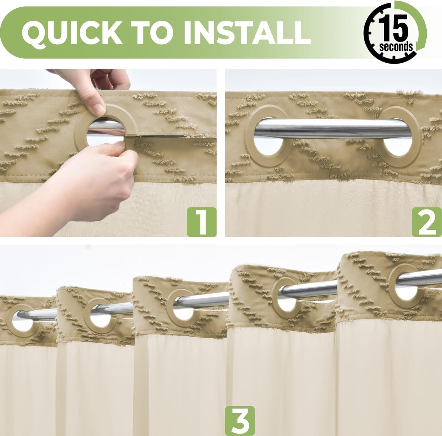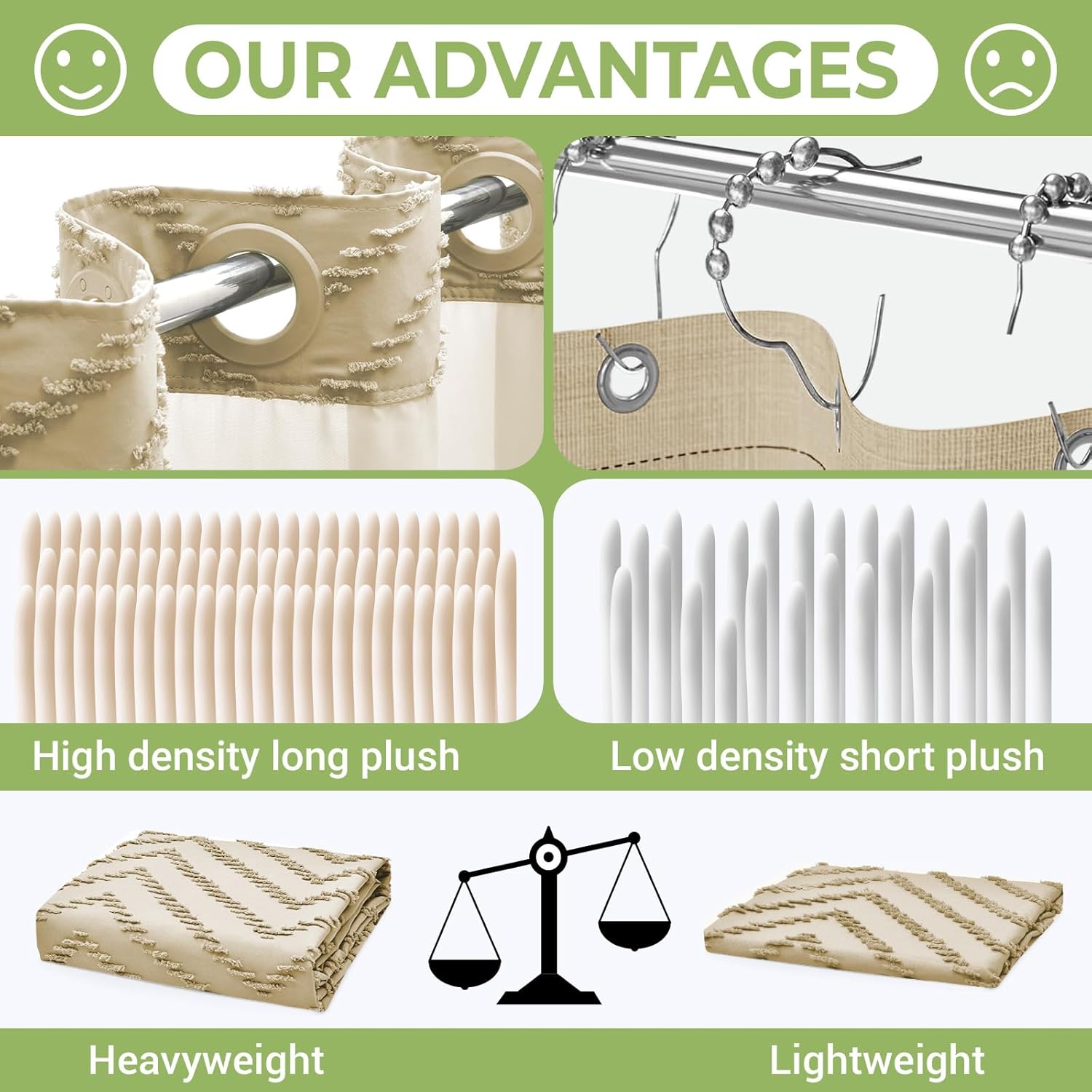 No Hook Shower Curtain with Snap in Liner, Tufted Chevron Striped Shower Curtain Set for Bathroom, Boho Waterproof and Washable Shower Curtains,71Wx74H, Khaki