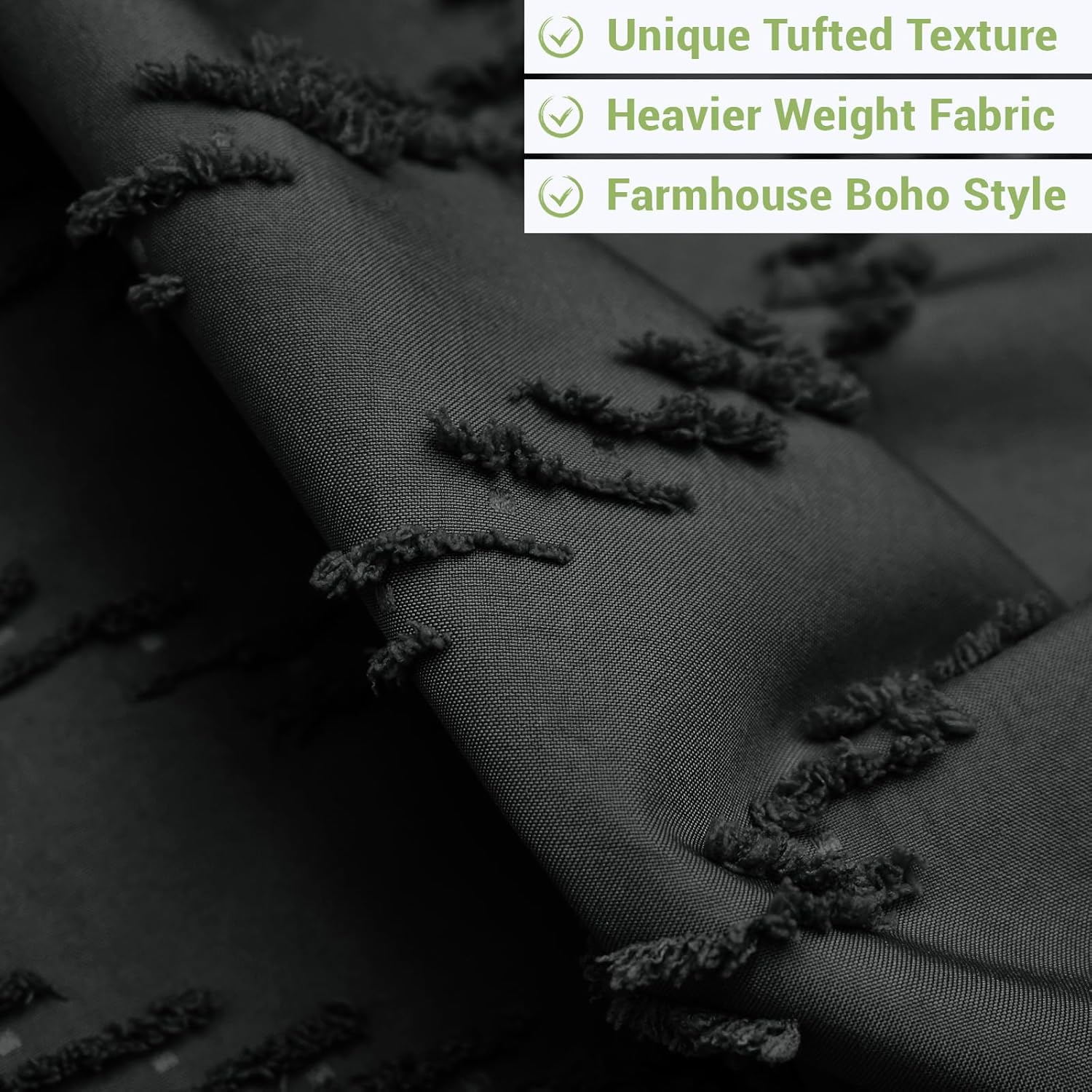No Hook Shower Curtain with Snap in Liner, Black Tufted Chevron Striped Shower Curtains for Bathroom, Waterproof & Washable, 71Wx74H