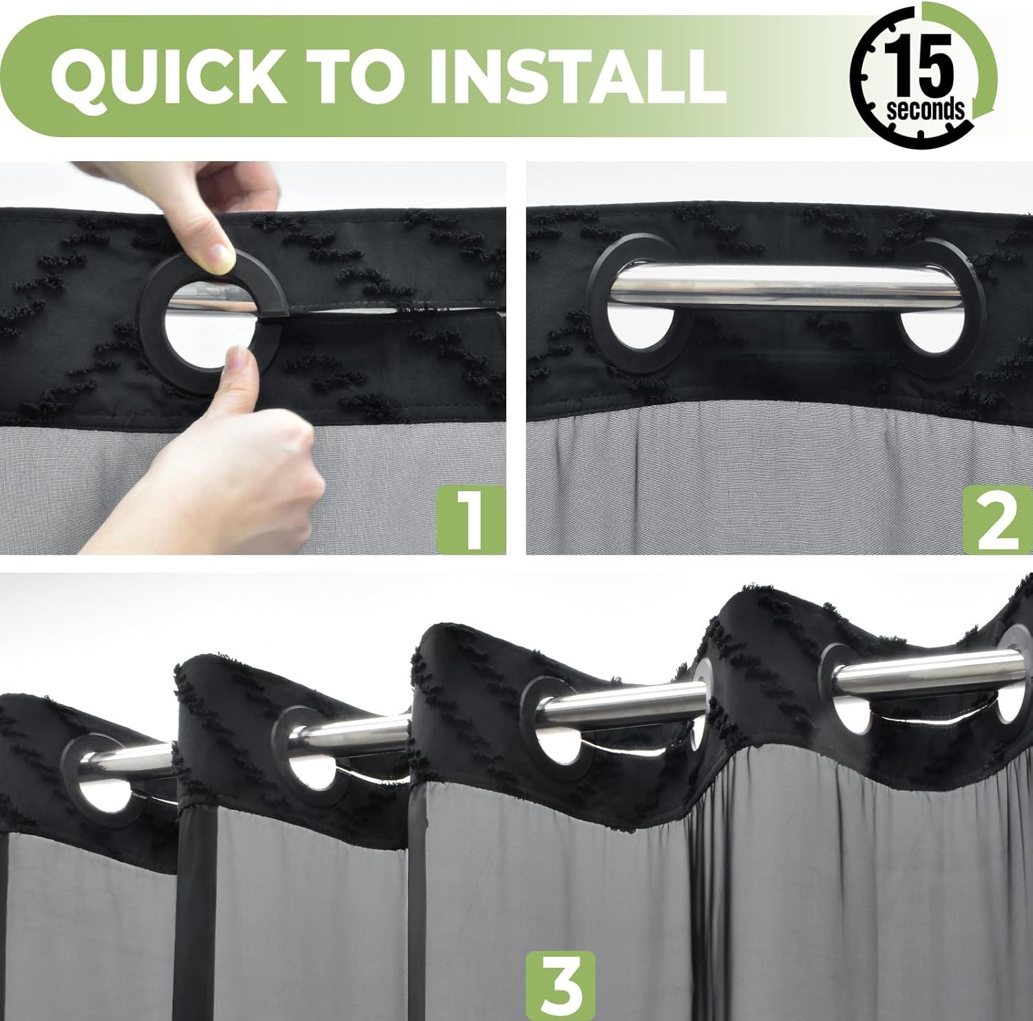 - 【No Hook Shower Curtain】This shower curtain is designed with Split Rings that let you hang it in a second. You don't need to take down the shower rod or purchase hooks