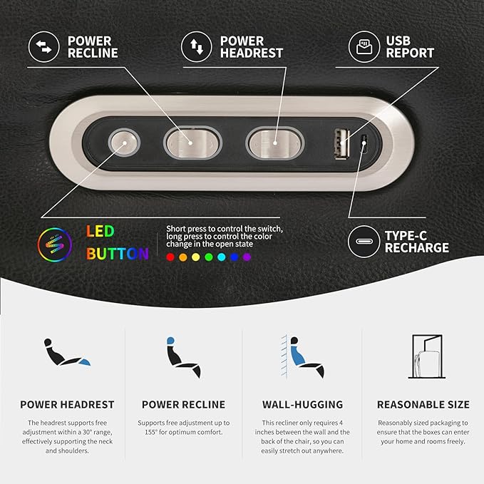 - HOME THEATER SEATING: A long day finally comes home to you and do you need a movie? Or a relaxing game time? Or simply a moment of relaxation and rest? Whatever it is, our home theater seating are perfect for you. 7 colors of light to adjust your atmosphere, Lumbar Pillow, Power recline and Type-C USB charging stations and so much more, you can easily enjoy your family time with the movie theater chairs