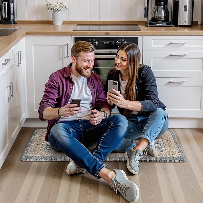 - Versatile:Boho style design features a central medallion and floral motifs in the style of rugs,easily to match your kitchen decor.Soft thick foam provides ample support for standing in kitchen sink, laundry room, office, bathroom, dinning room, or any other high-traffic area