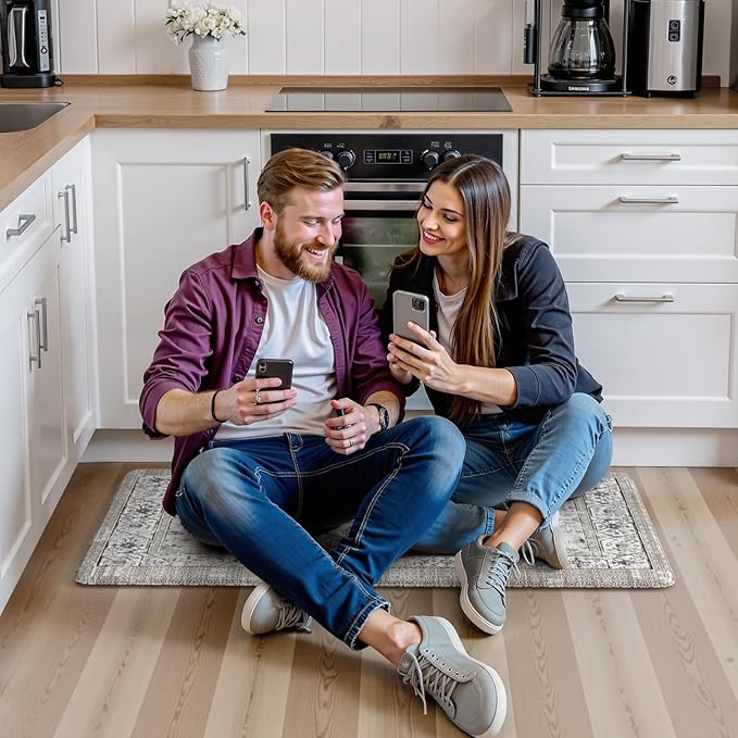 KIMODE Kitchen Mats Cushioned Anti Fatigue, Boho Vintage Kitchen Rugs, Grey 20"x39" Kitchen mats for Floor,Non Slip Kitchen Floor Mat, Comfort Padded Kitchen Floor Mats for Sink Laundry Office Desk