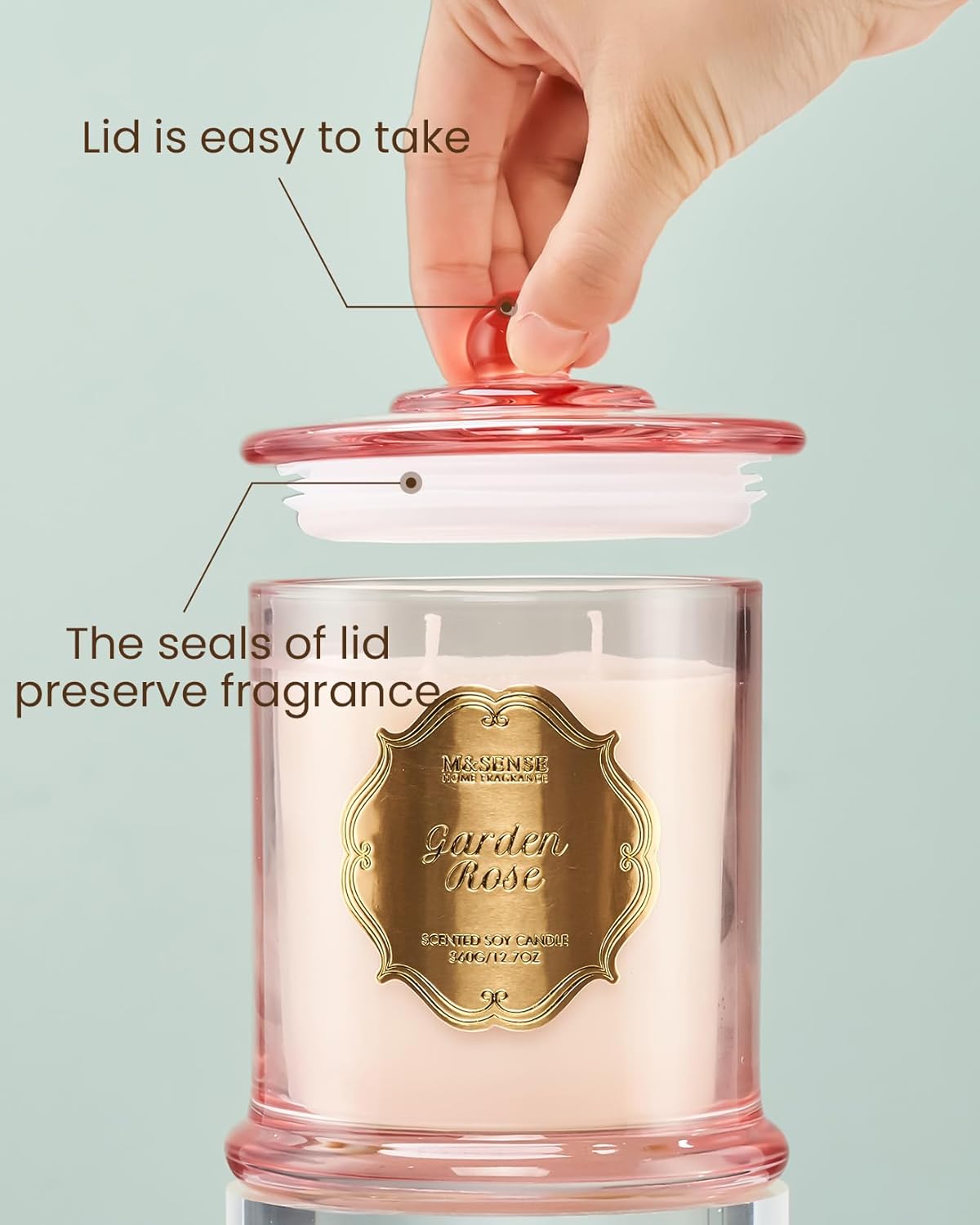 M&SENSE Rose Candles for Home Scented, Organic Soy Candles Non Toxic Soot-Free, 12.7oz Large Jar Candle 75 Hour Long Lasting Burning, Relaxing Aromatherapy Valentine's Day Gift for Women
