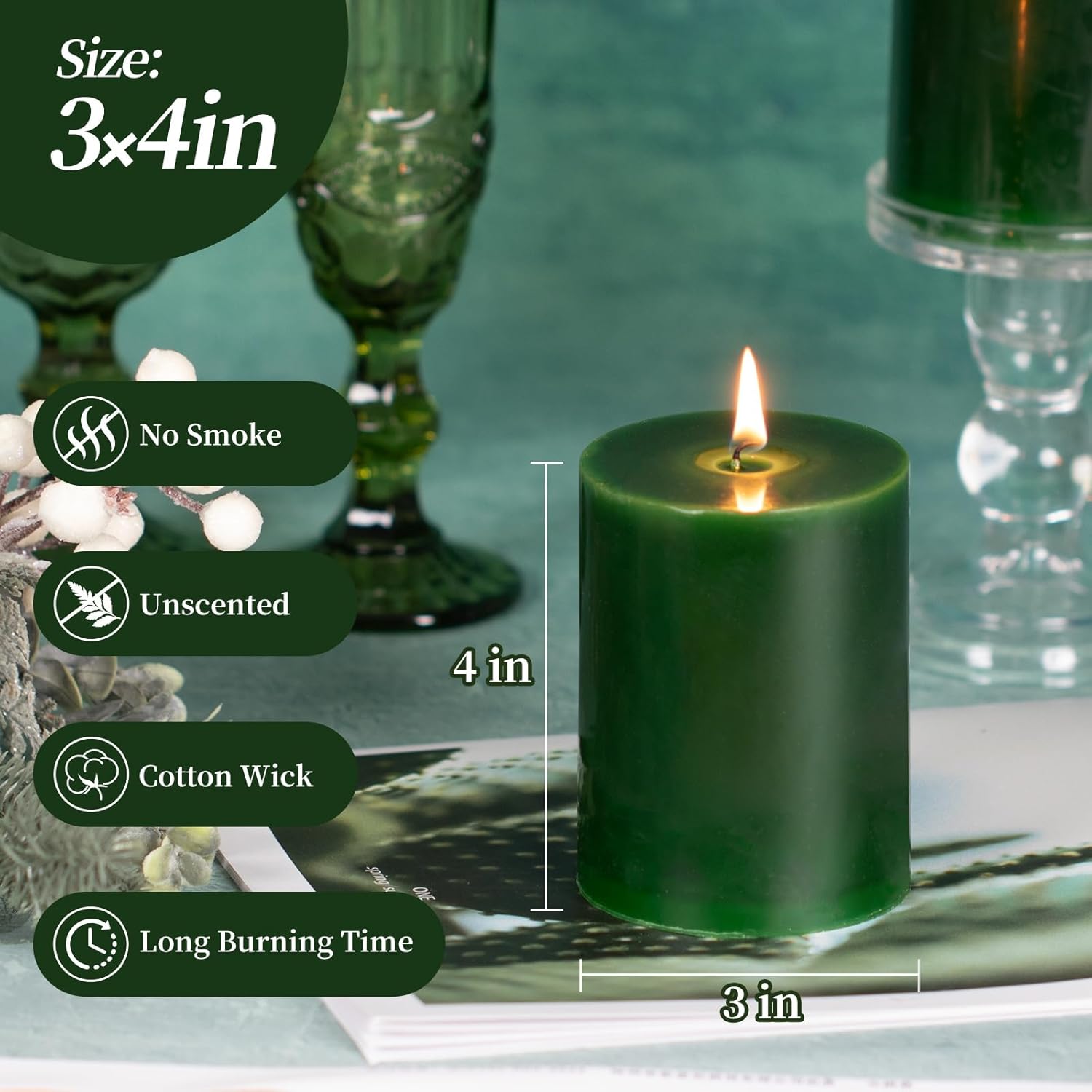 - 100% NATURAL MATERIALS: Pillar candles are made of premium wax and cotton wicks. Hand poured by experienced craftsmen, stable and clean burning, smokeless and dripless, no cracking.