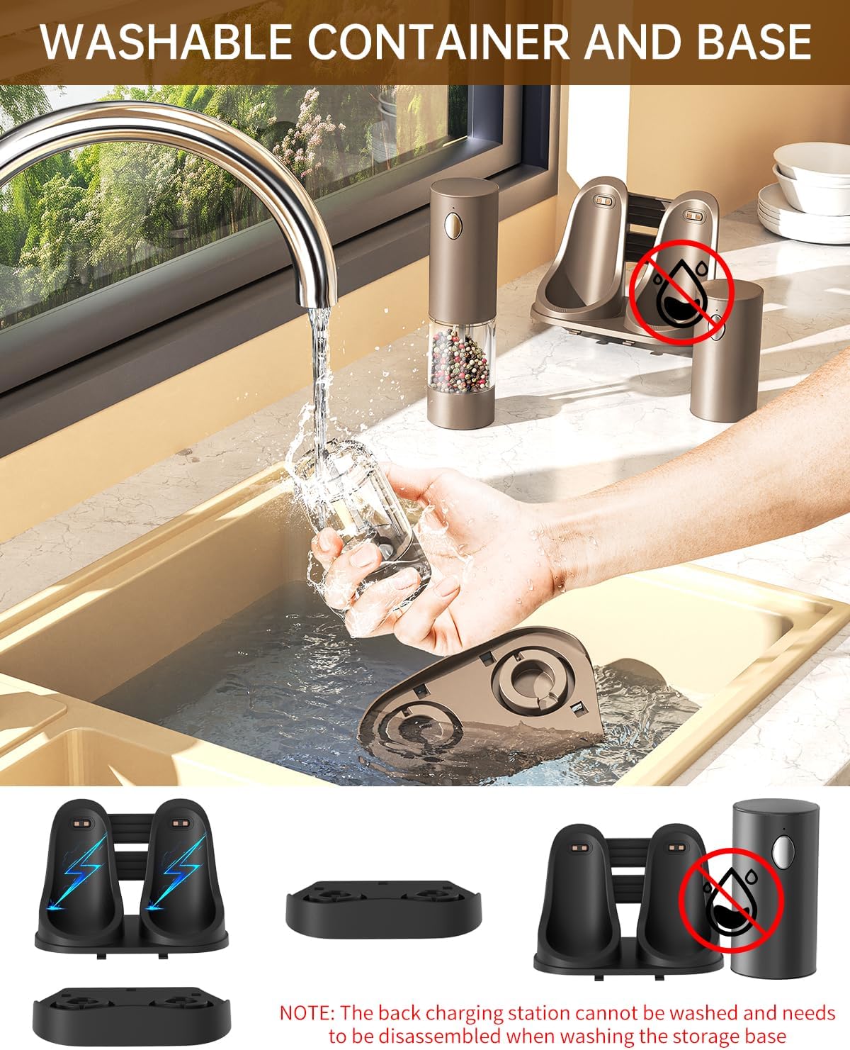 CIRCLE JOY Electric Salt and Pepper Grinder Set Automatic Salt and Pepper Grinder Set with Easy-to-Carry Charging Base and LED Light, USB Rechargeable, Upgrade External Adjustable Coarseness, Green