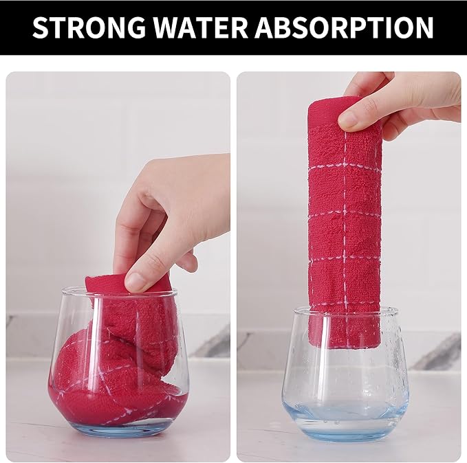 - Super Absorbent: These dish cloths are designed with upgraded terry structure, are lightweight, highly absorbent, and dry quickly. They can easily absorb plenty of liquid or wipe oil stains