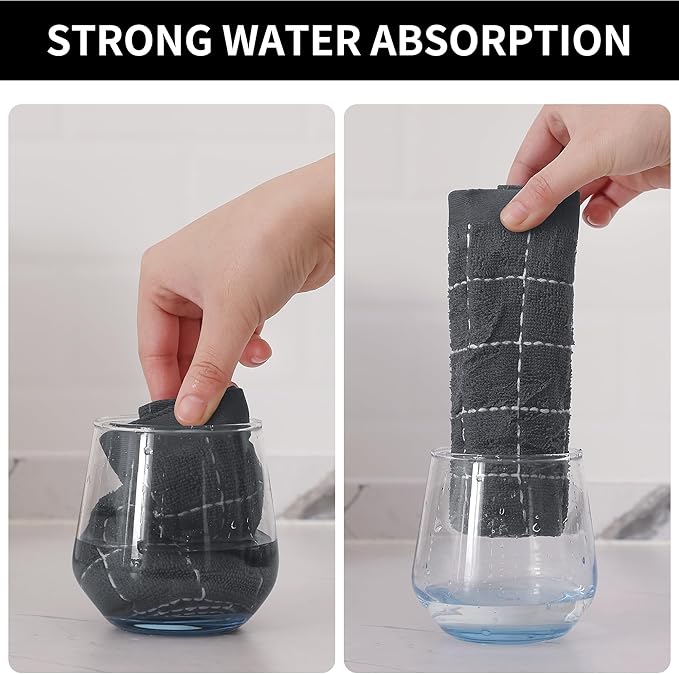 - Super Absorbent: These dish cloths are designed with upgraded terry structure, are lightweight, highly absorbent, and dry quickly. They can easily absorb plenty of liquid or wipe oil stains