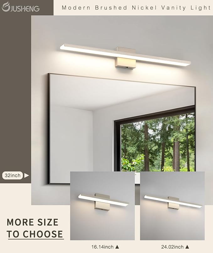 JUSHENG Brushed Nickel Vanity Lights for Bathroom Light Fixtures 5CCT Dimmable Vanity Light Bar LED Bathroom Lighting Over Mirror 31.5'' Inch 32W ETL Certificated