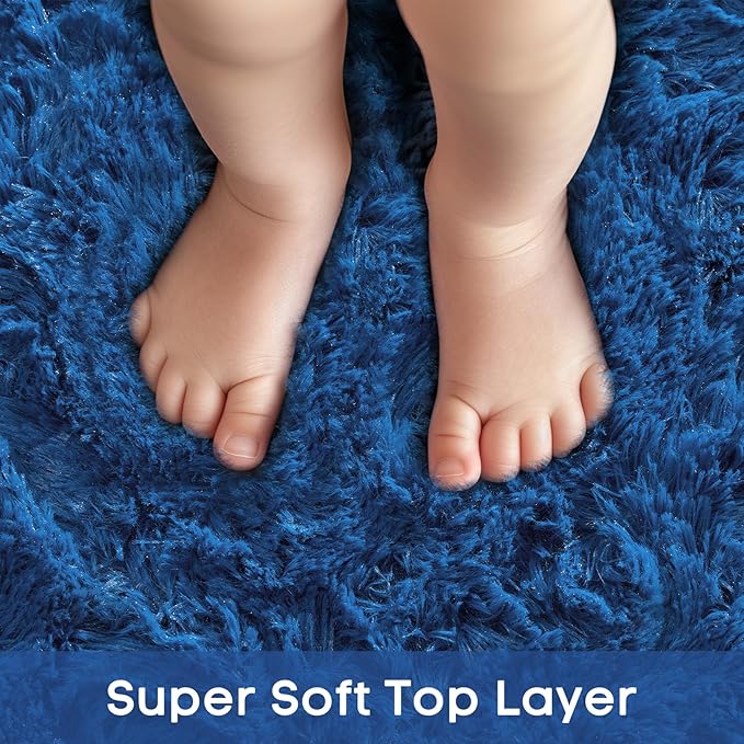 Ophanie Round Rug 7Ft Blue Circle Area Rug, Boys Room Decor, Fluffy Fuzzy Bedroom Carpet, Plush Soft Shaggy Living Room Rugs for Kids Home Decor Aesthetic, Nursery