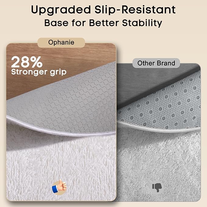 - Ultra Soft & Non-slip: Featuring a shaggy carpet surface, the Ophanie soft area rug is highly soft with a high-density sponge interlayer. This rug effectively reduces shedding, and the non-slip bottom with small, durable anti-slip dots enhances friction to prevent sliding.