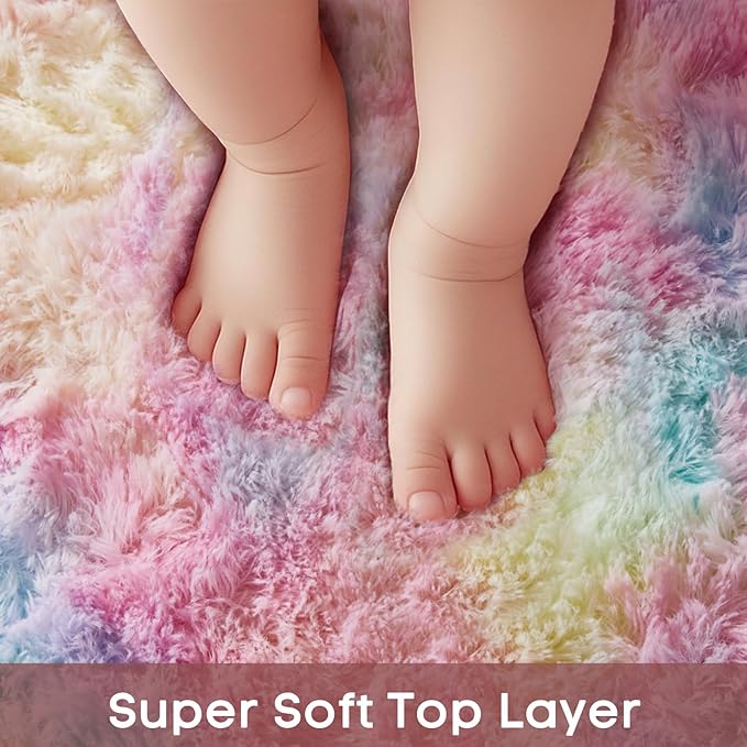 Ophanie Rainbow Rug for Bedroom Girls, Unicorn Colorful Fluffy Soft Cute Fuzzy Area Rugs, Shag Plush Shaggy Bedside Floor 4x4 Round Furry Carpet for Kids Baby Teen Dorm Nursery Home Decor Aesthetic
