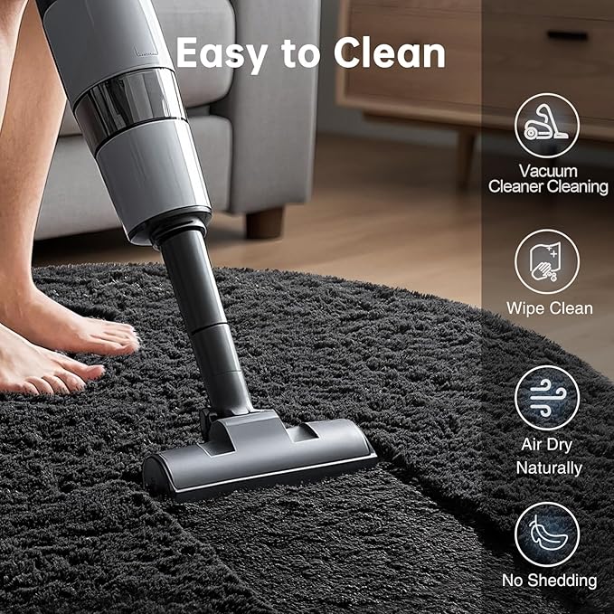 Ophanie Round Rug 5Ft Black Circle Area Rug, Room Decor for Men, Fluffy Fuzzy Bedroom Carpet, Plush Soft Shaggy Living Room Rugs for Kids Home Decor Aesthetic, Nursery