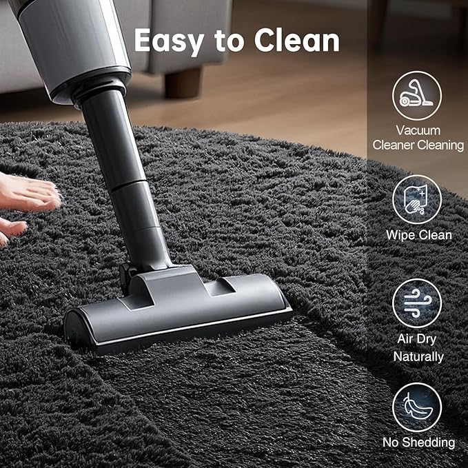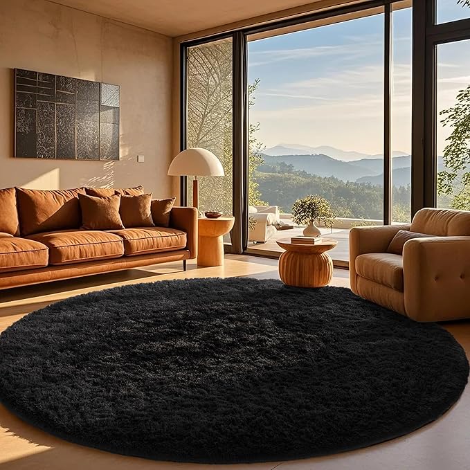 Ophanie Round Rug 8Ft Black Circle Area Rug, Room Decor for Men, Fluffy Fuzzy Bedroom Carpet, Plush Soft Shaggy Living Room Rugs for Kids Home Decor Aesthetic, Nursery