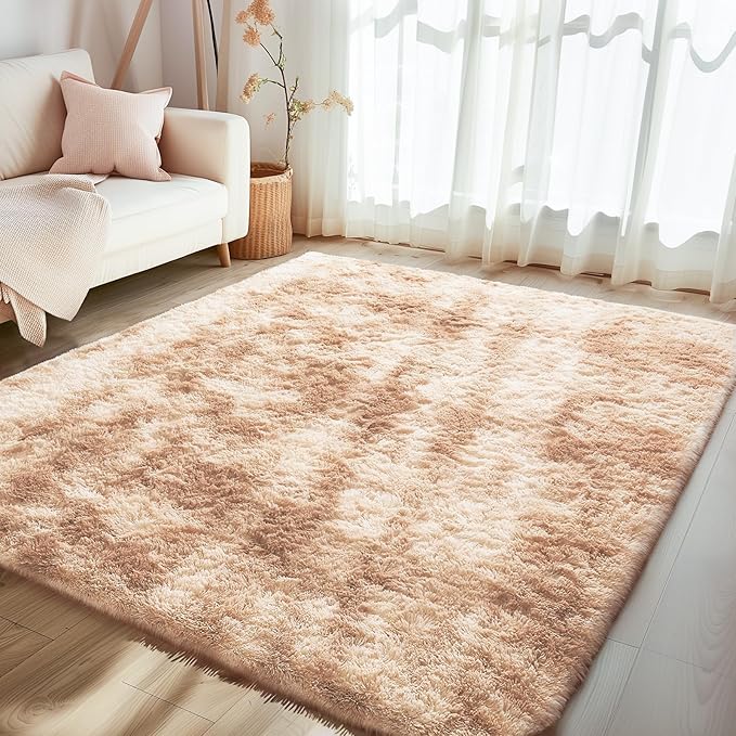Ophanie Upgrade 5x8 Tie-Dyed Beige Rugs for Living Room, Fluffy Soft Area Rug, Shaggy Non-Slip Indoor Floor Carpet for Bedroom, Kids Baby Girls Boys Teen Dorm Home Decor Aesthetic, Nursery