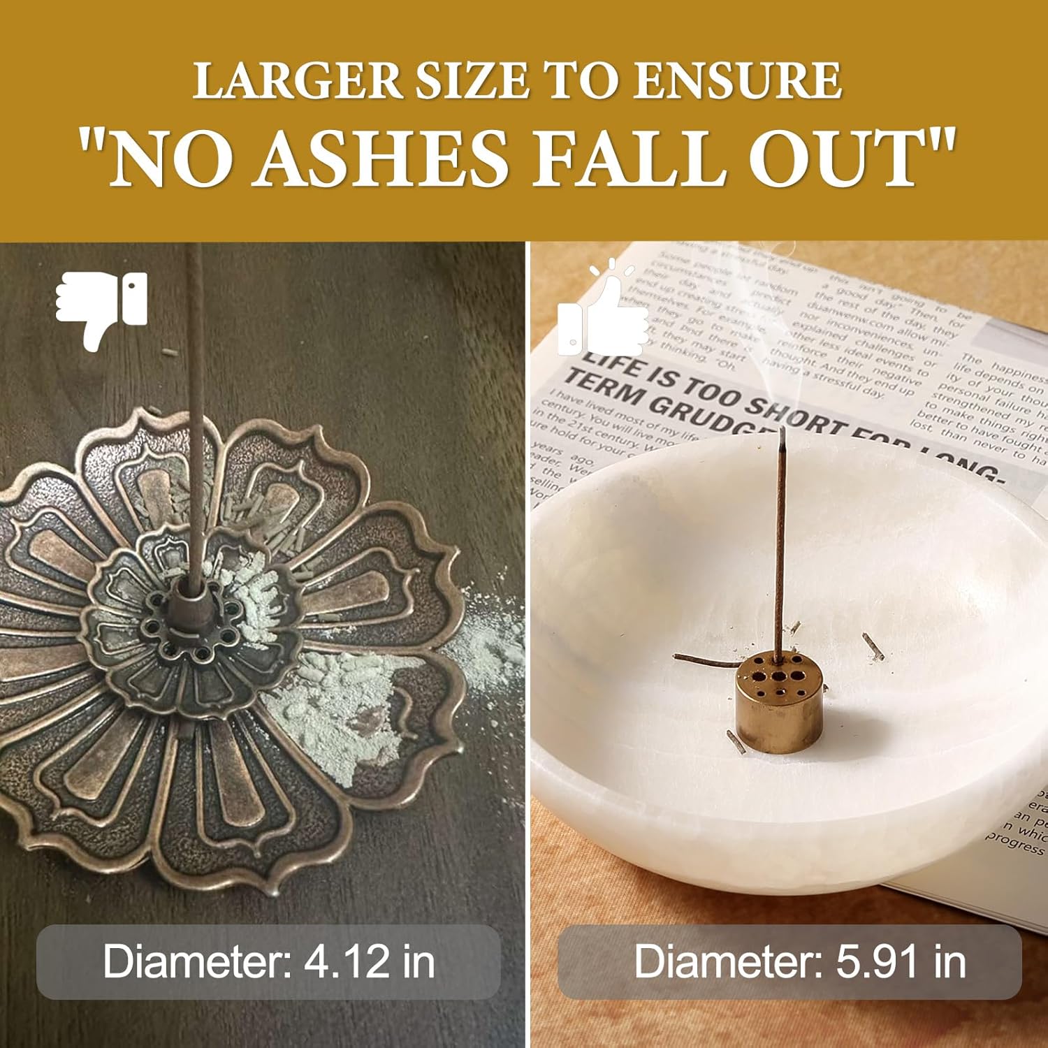 - 【Catch All the Incense Ash】The wider 5.91" diameter makes it catch ash easier.The surface of the incense burner is smooth and washable, very easy to clean.Can be widely used in living room, bedroom, study, meditation room, yoga room, etc