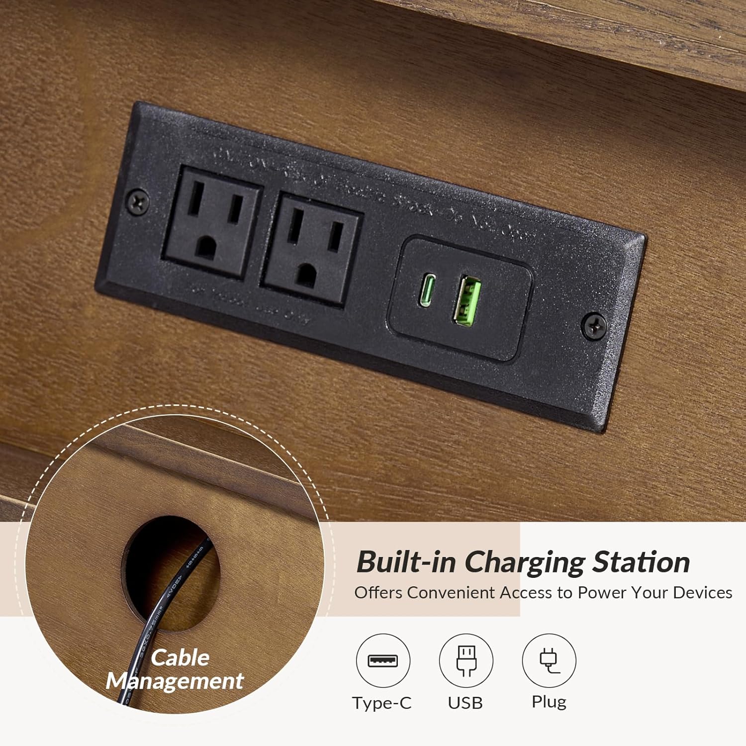 - Top Drawer with Charging Station – A concealed charging station at the back keeps phones, tablets, and devices charged and cords neatly hidden.