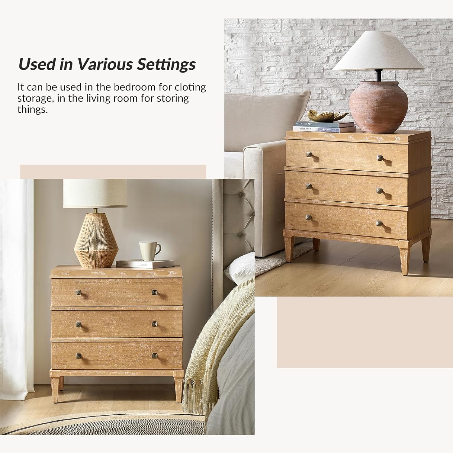 HULALA HOME 3-Drawer Nightstand with Charge Station, Farmhouse Nightstand with Solid Wood Legs, Set of 2(Acorn)