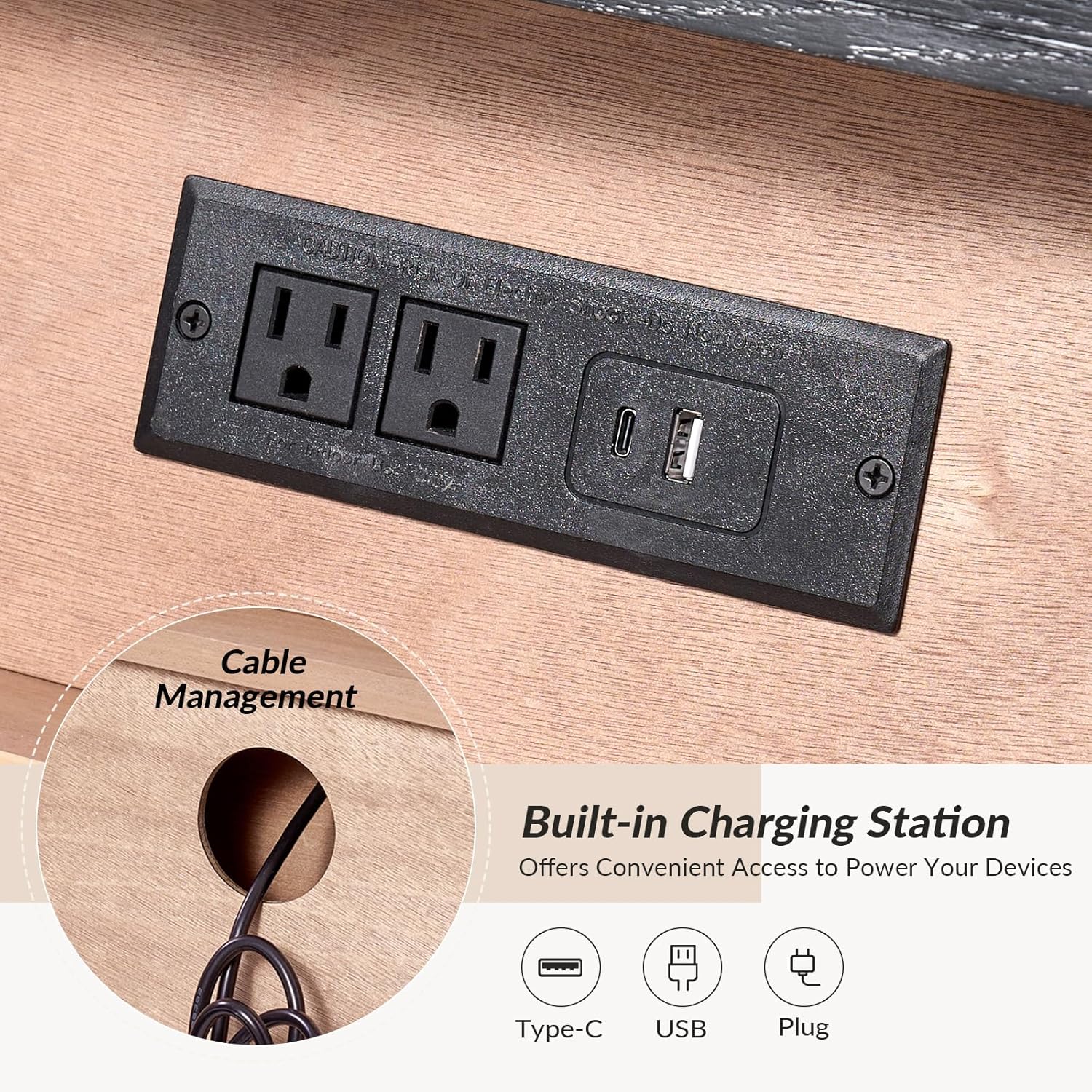 - Top Drawer with Charging Station – A concealed charging station at the back keeps phones, tablets, and devices charged and cords neatly hidden.