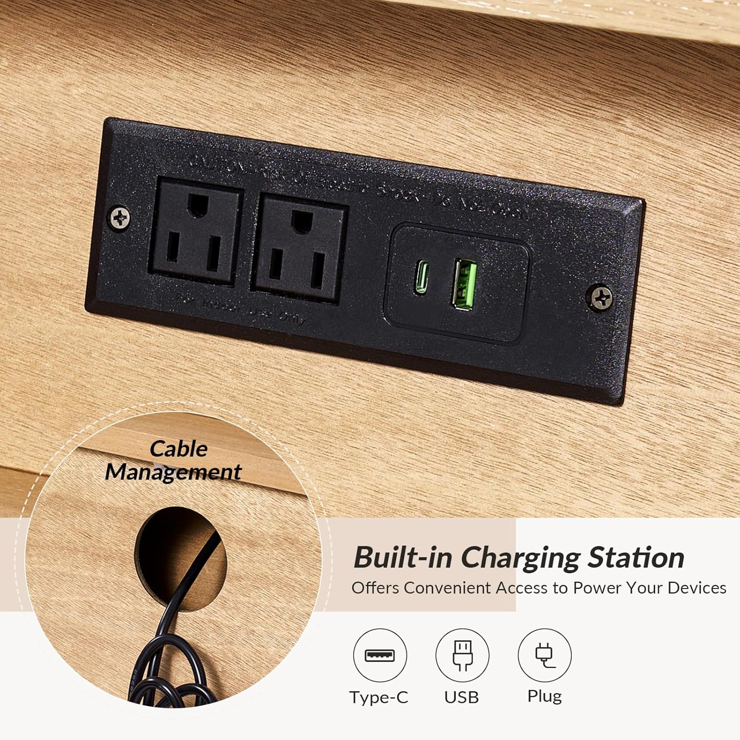 - Top Drawer with Charging Station – A concealed charging station at the back keeps phones, tablets, and devices charged and cords neatly hidden.