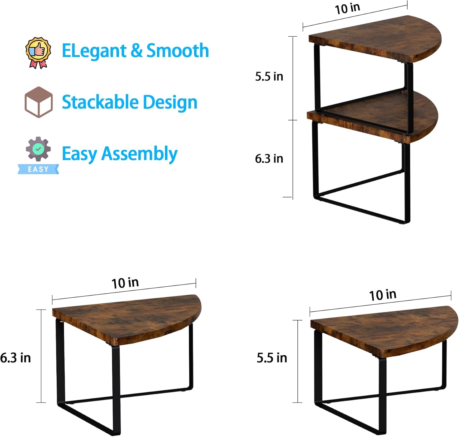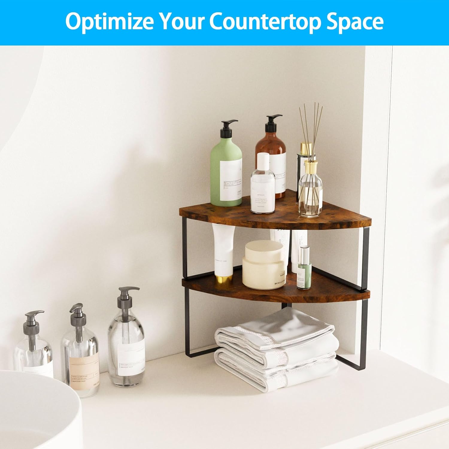 Corner Shelf Countertop Organizer - Set of 2 Corner Shelves for Kitchen Cabinet Organizer, Spice Rack, Stackable Bathroom Organizers and Storage, Sink Rack, Corner Cabinet, Counter Decor, Rustic Brown