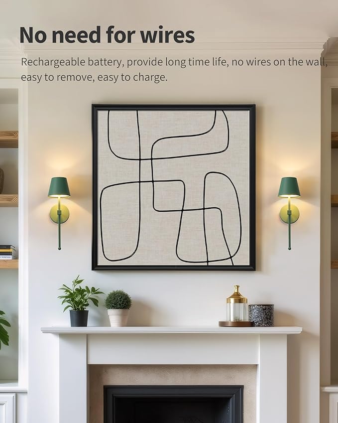 KDG Cordless Wall Sconces Set of 2, Wireless 5200mAh Rechargeable Battery LED Wall Lamps, Wall Lightings for Wall Painting, Outdoor, Garden, Living Room, Bedside, Hallway, Gifts, Night Light (Green)