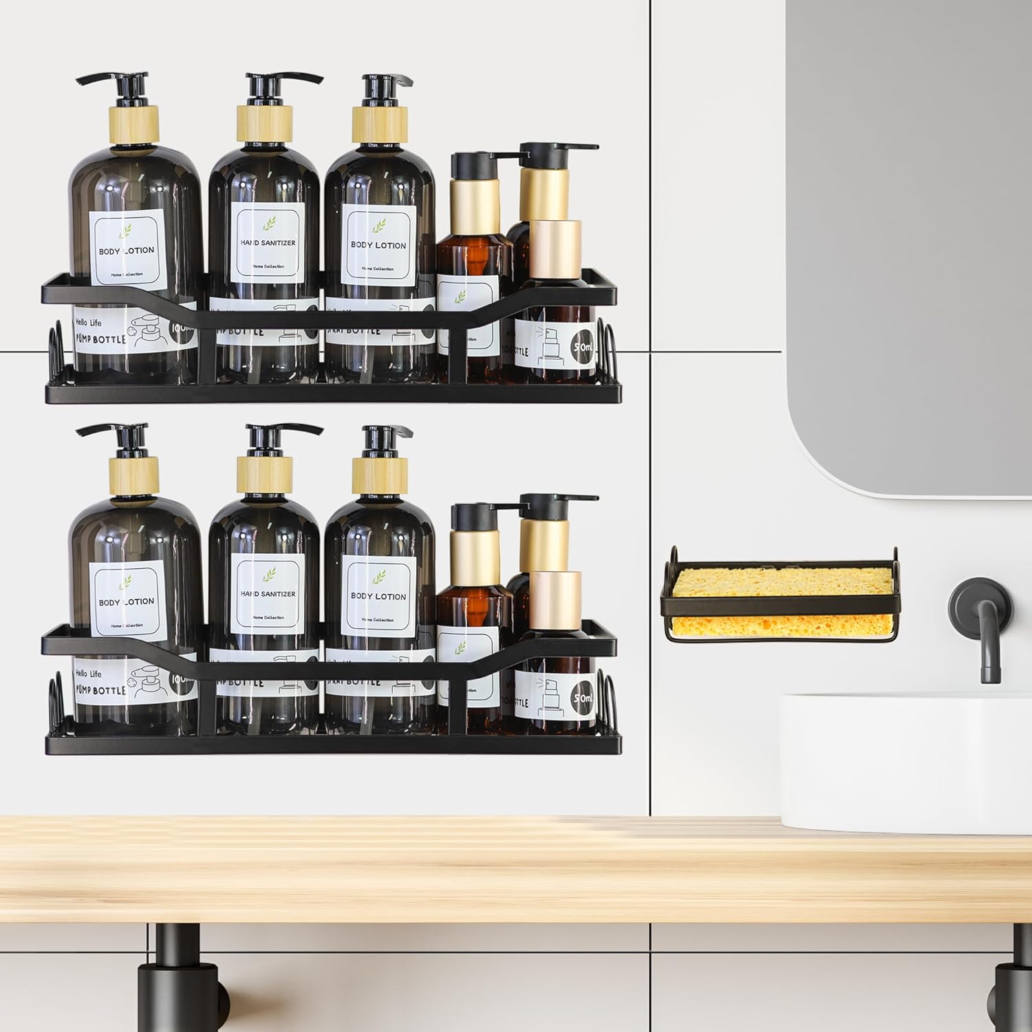 - ăVersatile for Bathroom & Kitchenă Ideal for showers, sinks, or kitchen backsplashes. Black finish adds a modern touch to any decor, resisting fingerprints and stains, large storage capacity design leaves more room for storage problems, perfect for bathroom/dormitory/kitchen/toilet/RV.