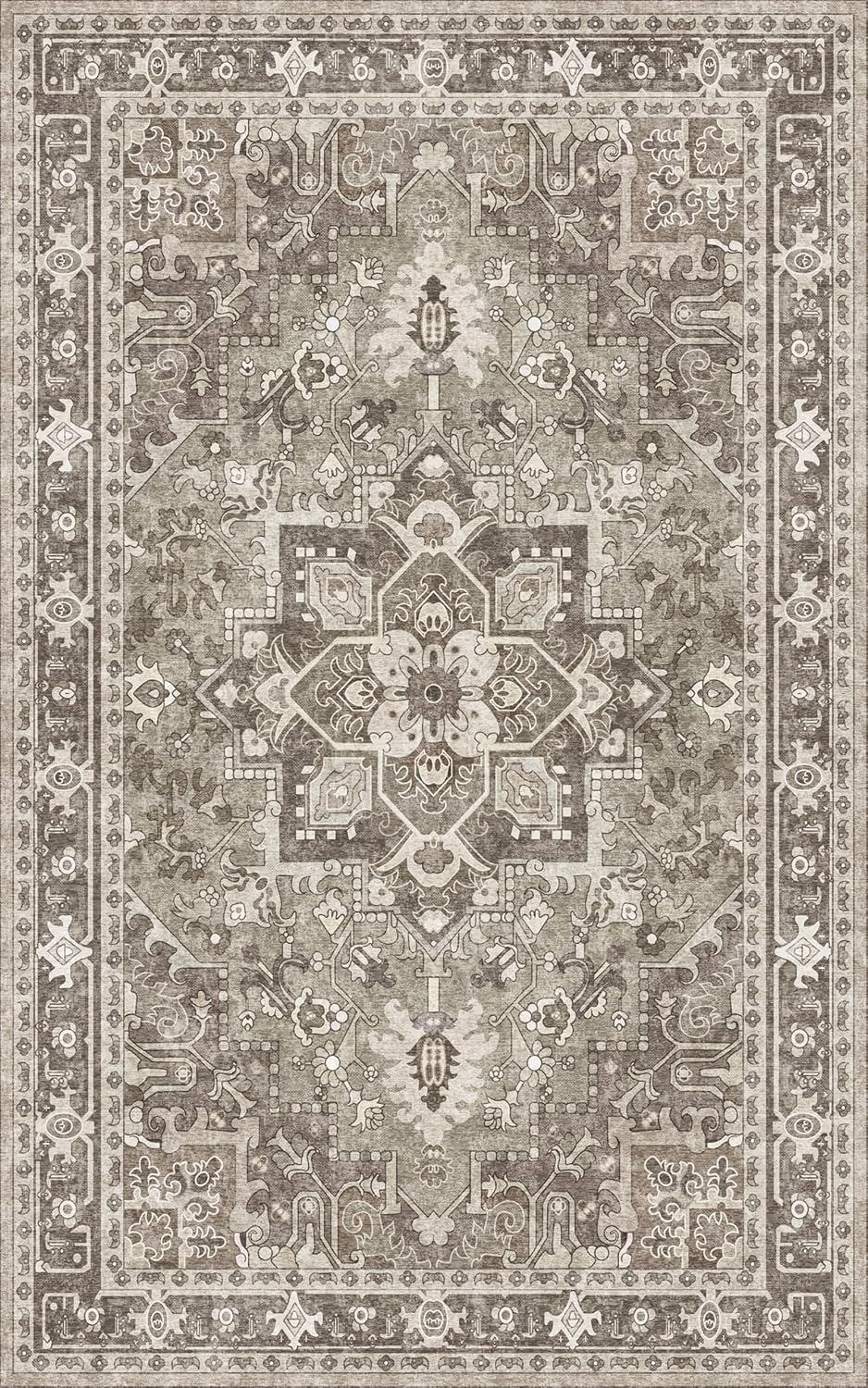 Washable Area Rug 5x8 | Non Slip Area Rug for Living Room, Bedrooms, Dining Room | Ultra-Soft Flannel Carpet Area with Rubber Backing (Sage Brown, 5x8)