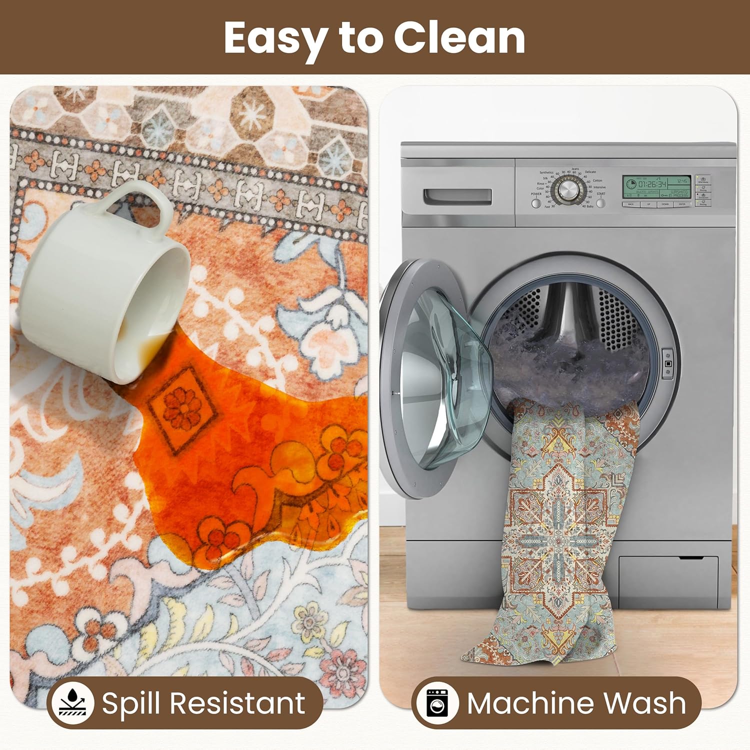 - NON-SLIP DESIGN FOR SAFETY: The washable non slip rugs is paramount, especially in busy like hallways, entryways, kitchens, bathrooms, and bedrooms. The rugsi 5x8 area rug boasts a robust rubber backing, engineered to grip firmly onto various floor surfaces, preventing unwanted slips and falls. Enjoy peace of mind knowing your loved ones are safe and secure.