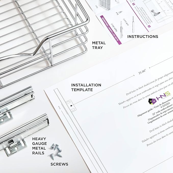- EASY TO INSTALL & HARDWARE INCLUDED: Our pull out cabinet organizer dimensions measure 22”W x 21”D x 5” and includes simple step-by-step instructions along with all of the hardware necessary for easy installation. Installs with just a few simple screws, and Fits cabinet openings 23-1/4” and larger.