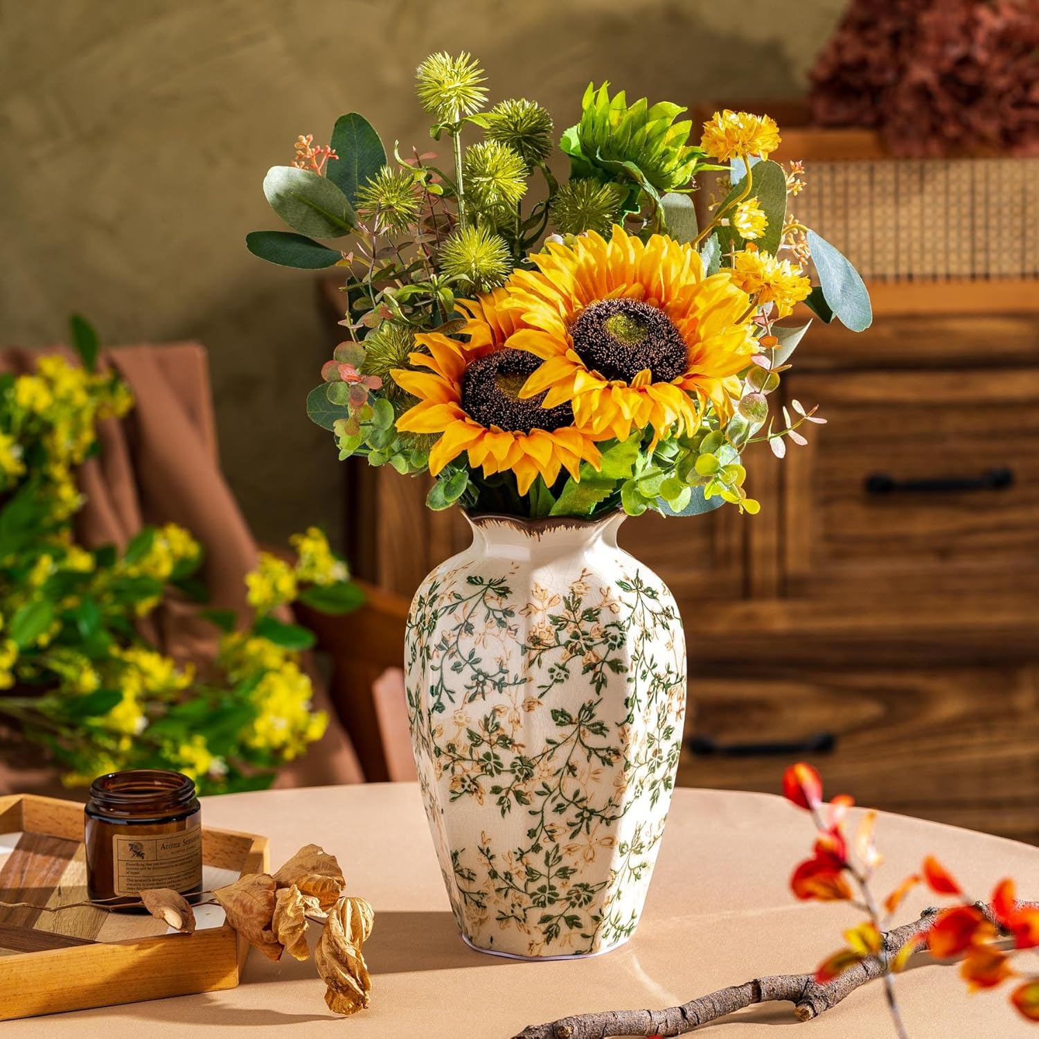 - VERSATILE STYLING: This floral vase is ideal for fresh or faux flowers, branches, or greenery. Whether placed in the living room, bedroom, dining room, kitchen, or bathroom, it enhances any space with its timeless appeal. Perfect as a centerpiece for Tuscan decor or a decorative accent for ceramic vases for home decor.