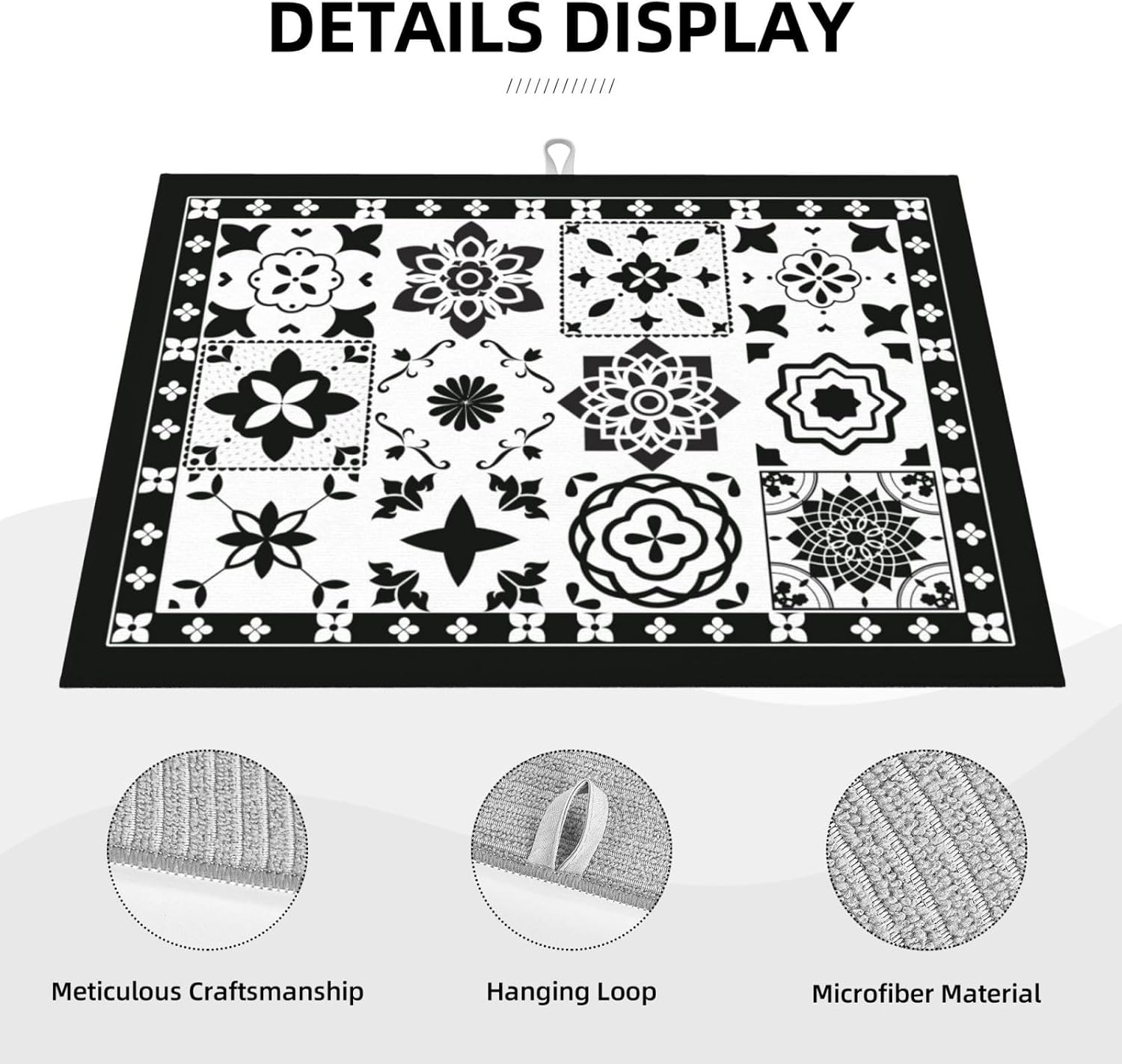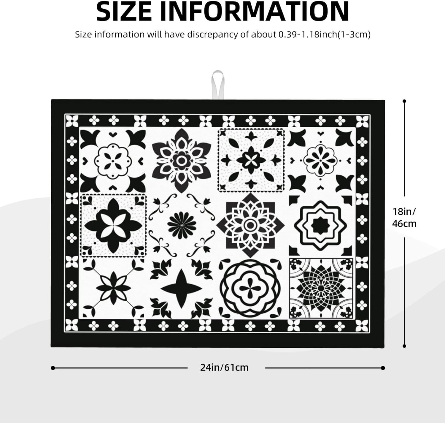 Retro Black Pattern Dish Drying Mat 18x24 For Kitchen Counter Absorbent Microfiber Dishes Pad Dish Drainer Rack Mats Fast Dry Kitchen Accessories