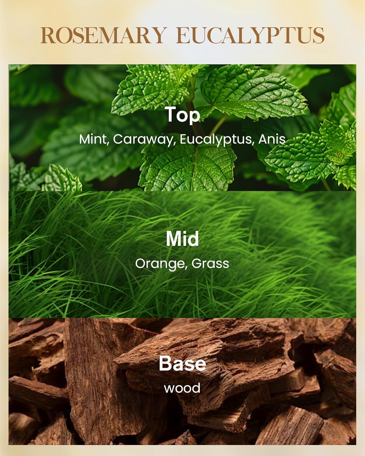 - Scent : eucalyptus, rosemary