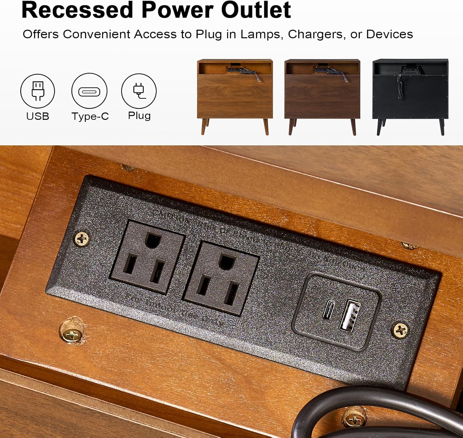 - THOUGHTFUL DESIGN – Equipped with 2 outlets, and a hidden wire compartment for easy and tidy power access.