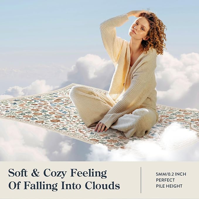 - Elegant Floral Pattern Design: Delicate floral motifs and sinuous vines evoke boho style. This rug brings a distinctive bohemian flair to your space, immersing you in an atmosphere of refined elegance