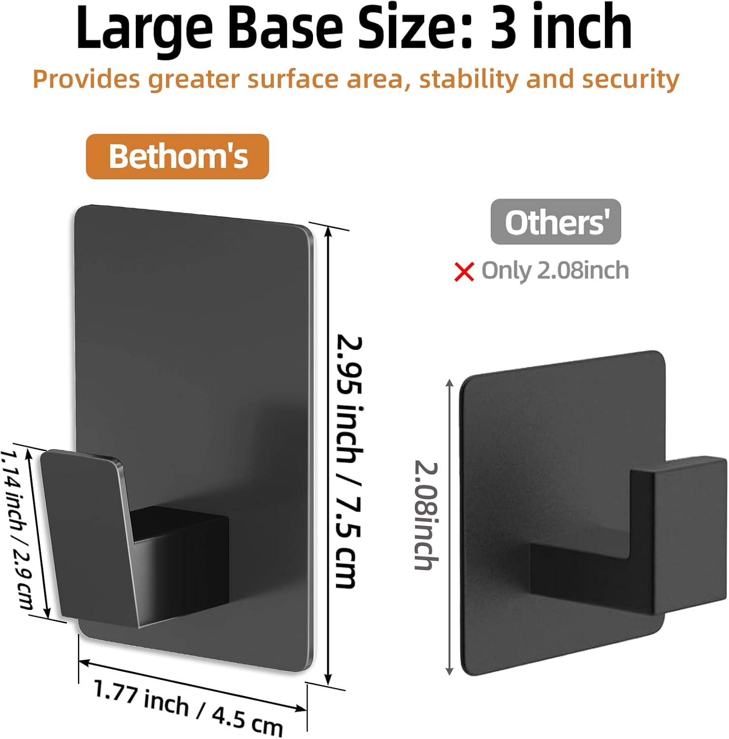 - Larger Base Design: Size: 3 in (75mm) x 1.77 in(45mm). The base of these hooks is significantly larger than typical adhesive hooks on the market. This expanded footprint provides an even greater surface area for adhesion, further enhancing stability and security