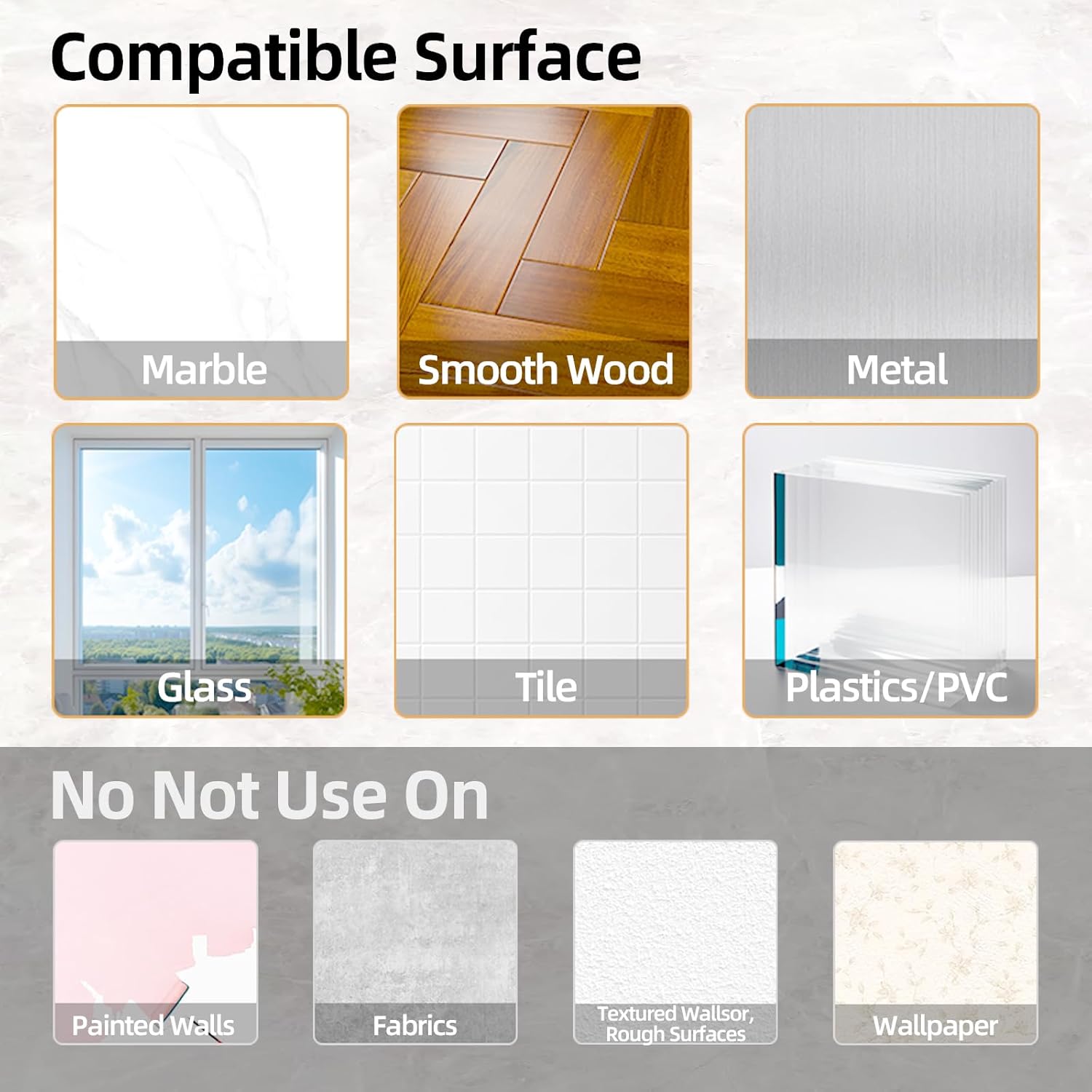 - Easy Installation Wall Hooks: Tear off the self-adhesive film, stick the hook on a smooth surface (such as: metal surface, tiles, glass, metal, marble, etc.), and wait 24 hours before hanging things