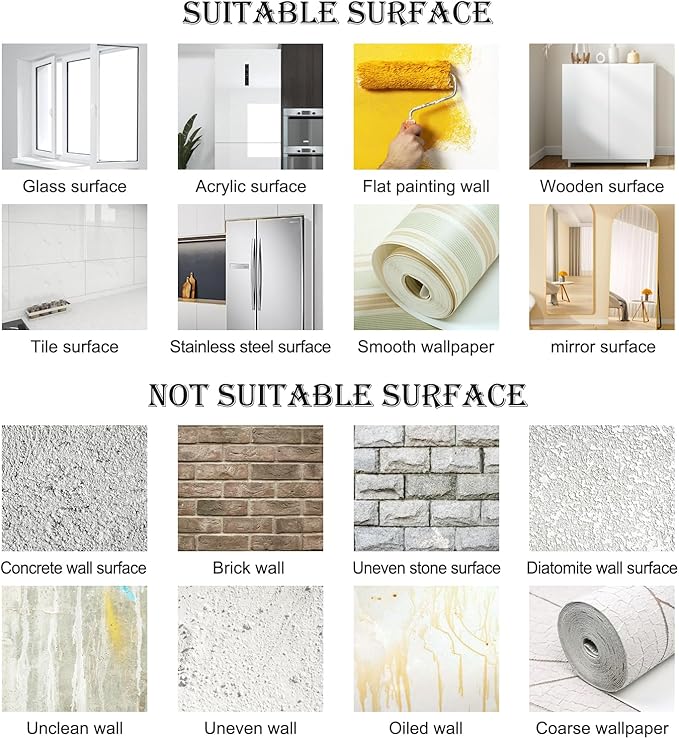 - 【Easy to Apply】: There's a small finished image for your reference. ⭐1.Flatten the rolled stickers with weight. ⭐2.Cut out large patterns around the die-cut edge before applying. ⭐3.Slowly remove the backing paper while placing the sticker onto the wall. ⭐4.At last, use the included card to smooth and firm the sticker against the wall.