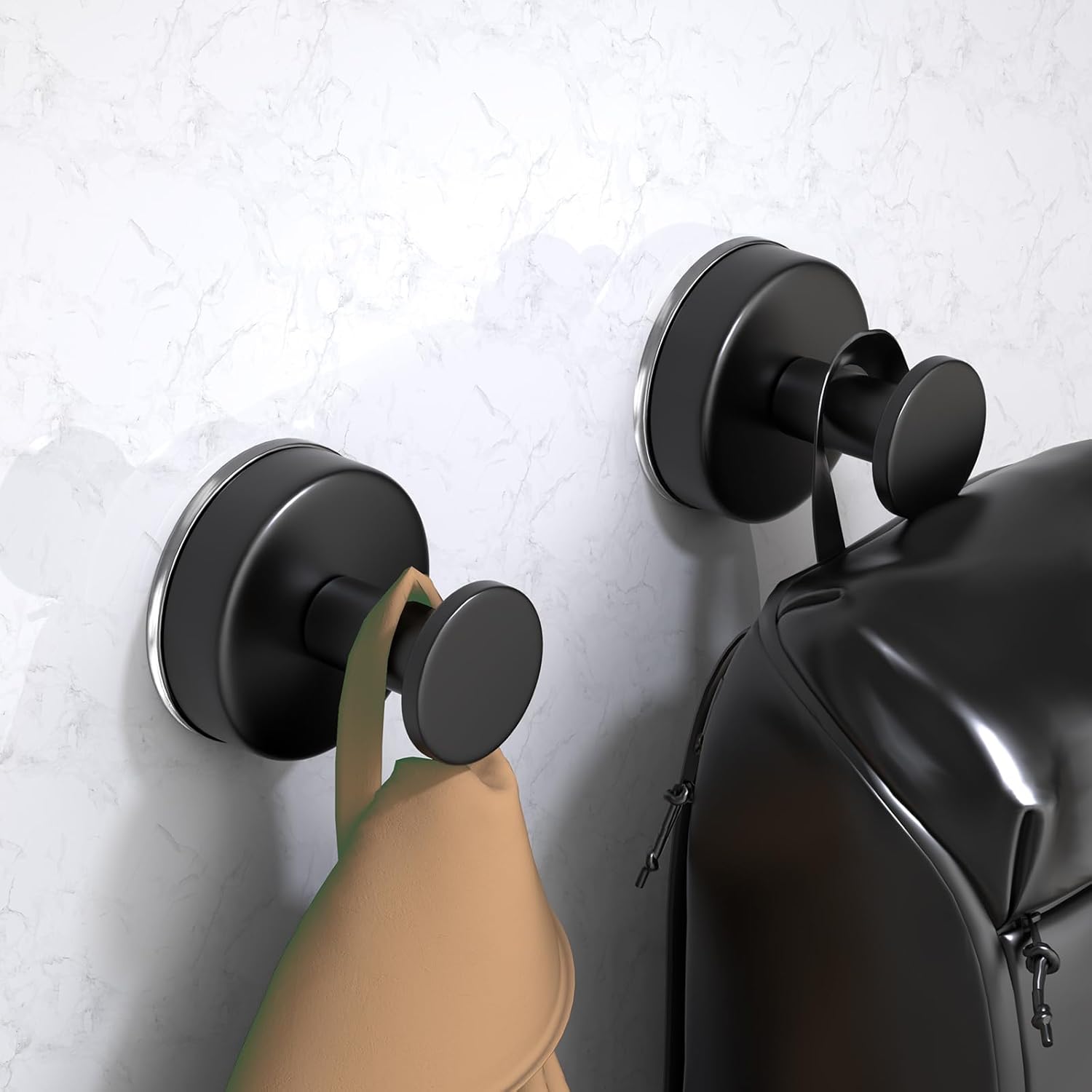 Suction Cup Hooks for Shower, Towel Hooks for Hanging Towels, Robes, Bath Balls, Stainless Steel Shower Hooks for Bathroom Wall, Glass Door, Kitchen, Mirror, Tile (2 Pack,Black)