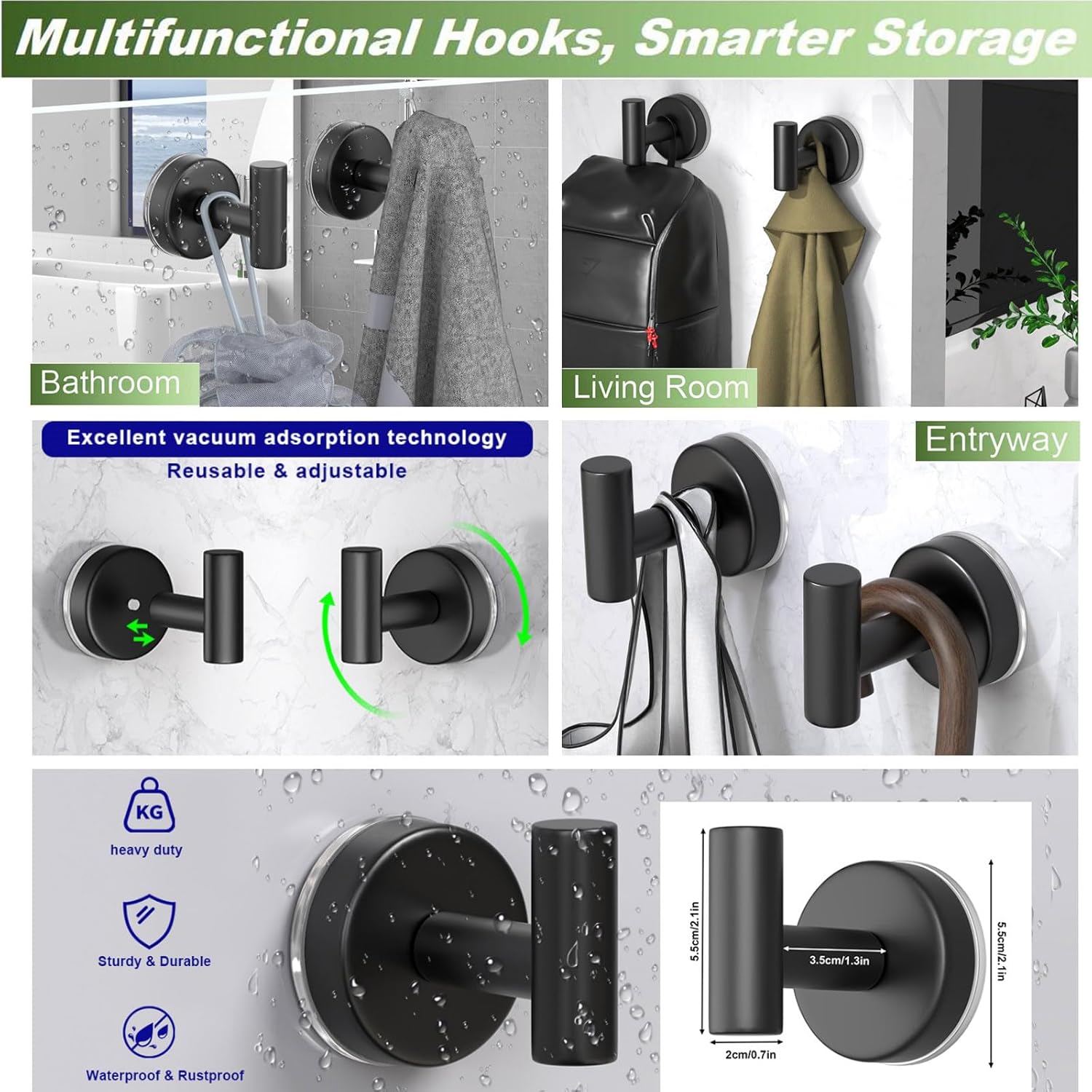 - 【Heavy-Duty & Reliable】 These suction cup hooks feature a super-sticky silicone base and advanced vacuum adsorption technology, offering exceptional load-bearing capacity. Perfect for hanging towels, robes, coats, and more, they keep your space organized and clutter-free while maintaining a sleek, tidy look.
