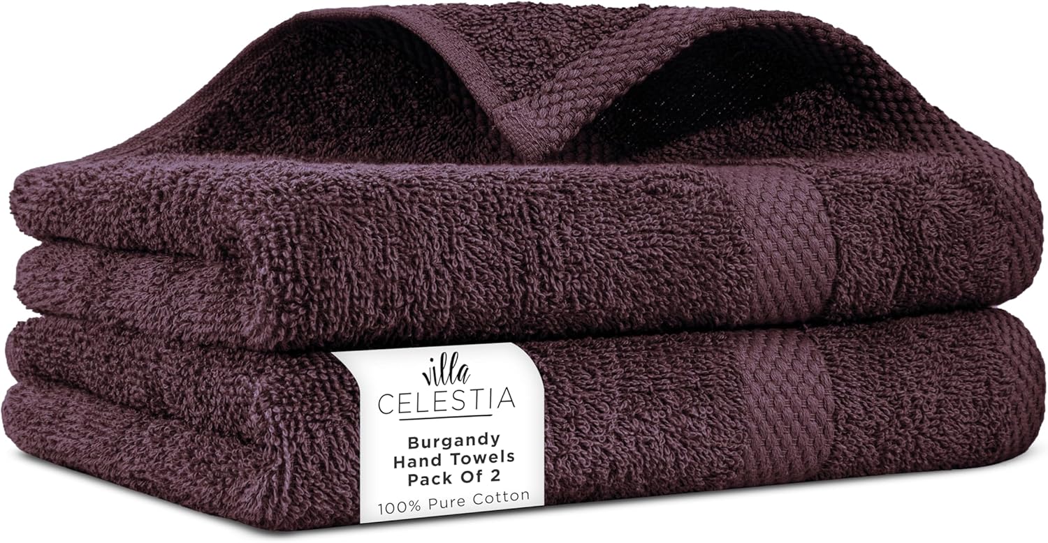 100% Cotton Hand Towel Set of 2, (16 x 28 inches) Sustainable, Soft, Highly Absorbent, Quick Drying, Combed Cotton Hand Towels Pack of 2 Ideal for Hotels, Spa, Bathroom, Dorm, Burgandy