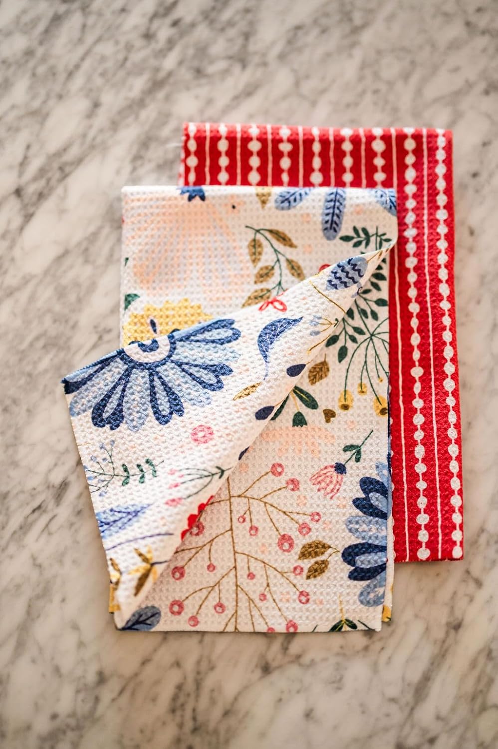 || 2 Pack Double Sided|| Not Your Ordinary Dish Towels || Waffle Weave Microfiber || Tea Towels || Highly Absorbent || Hanging Loop || Dish Cloths|| Designer Prints|| Flower Garden