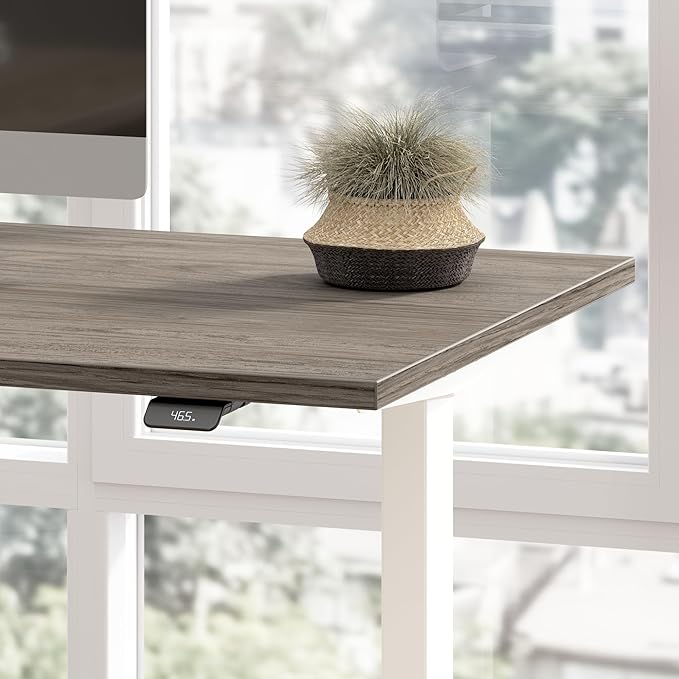 Bush Business Furniture 60-inch Electric Height Adjustable Standing Desk, Ergonomic Sit-Stand Computer Table for Home and Professional Office, Move 60 Series, Modern Hickory with White Base