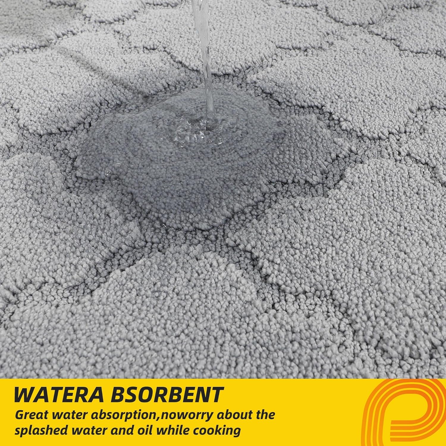 - Unmatched Comfort and Durability: Our kitchen floor mats is made of wear-resisting polyester fibers.The kitchen rugs resists wear through precision stitching for long-term use. Its stain-repellent surface rapidly absorbs spills while blocking oils and food debris, keeping floors dry in high-moisture zones like sinks and cooking stations.