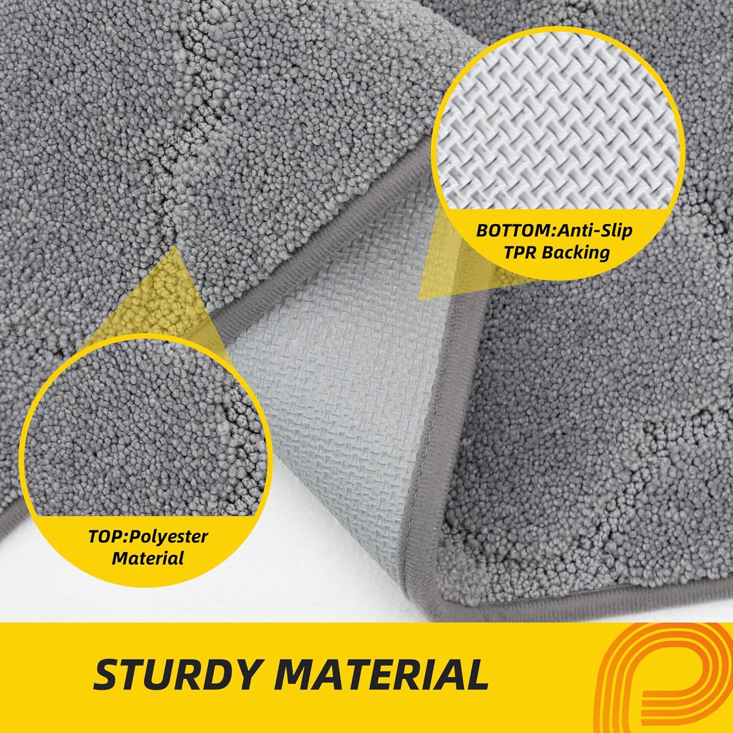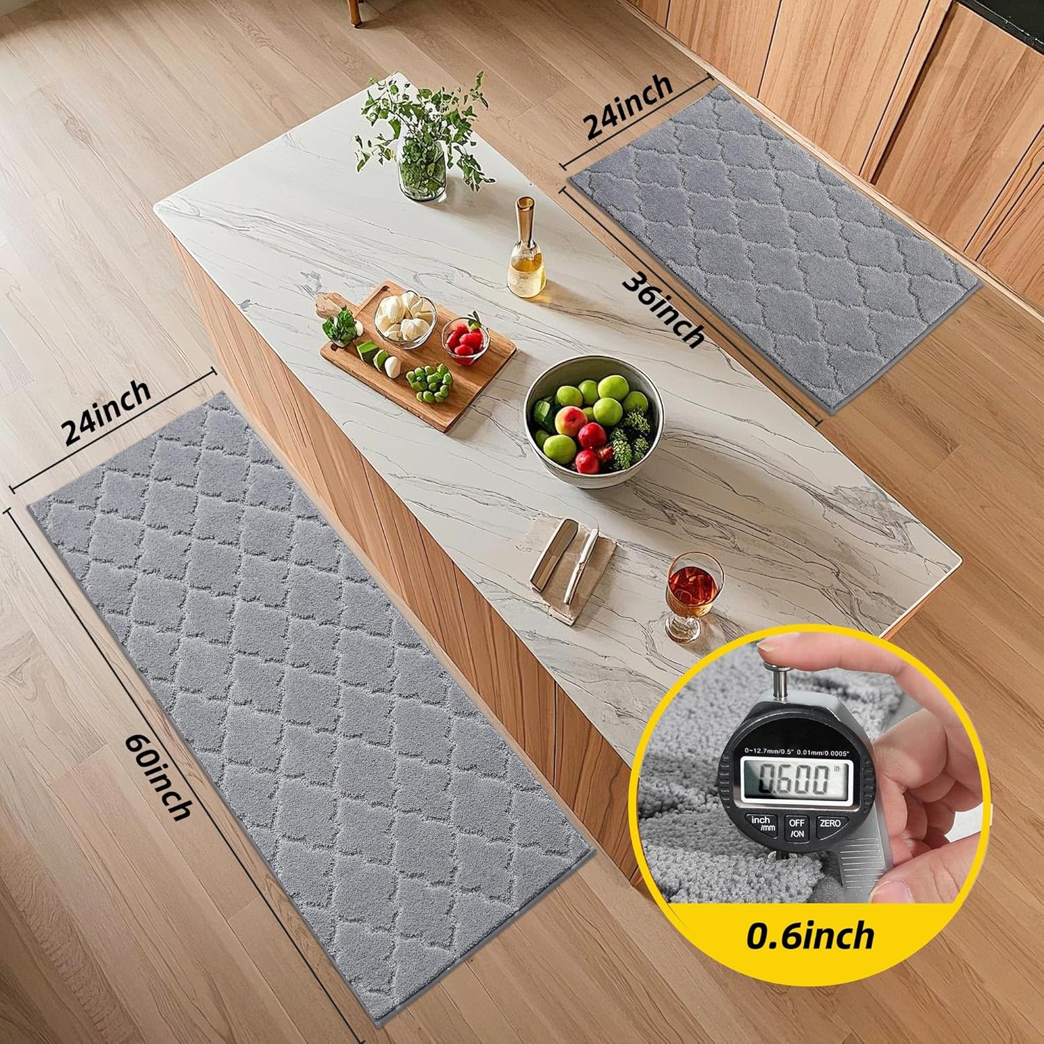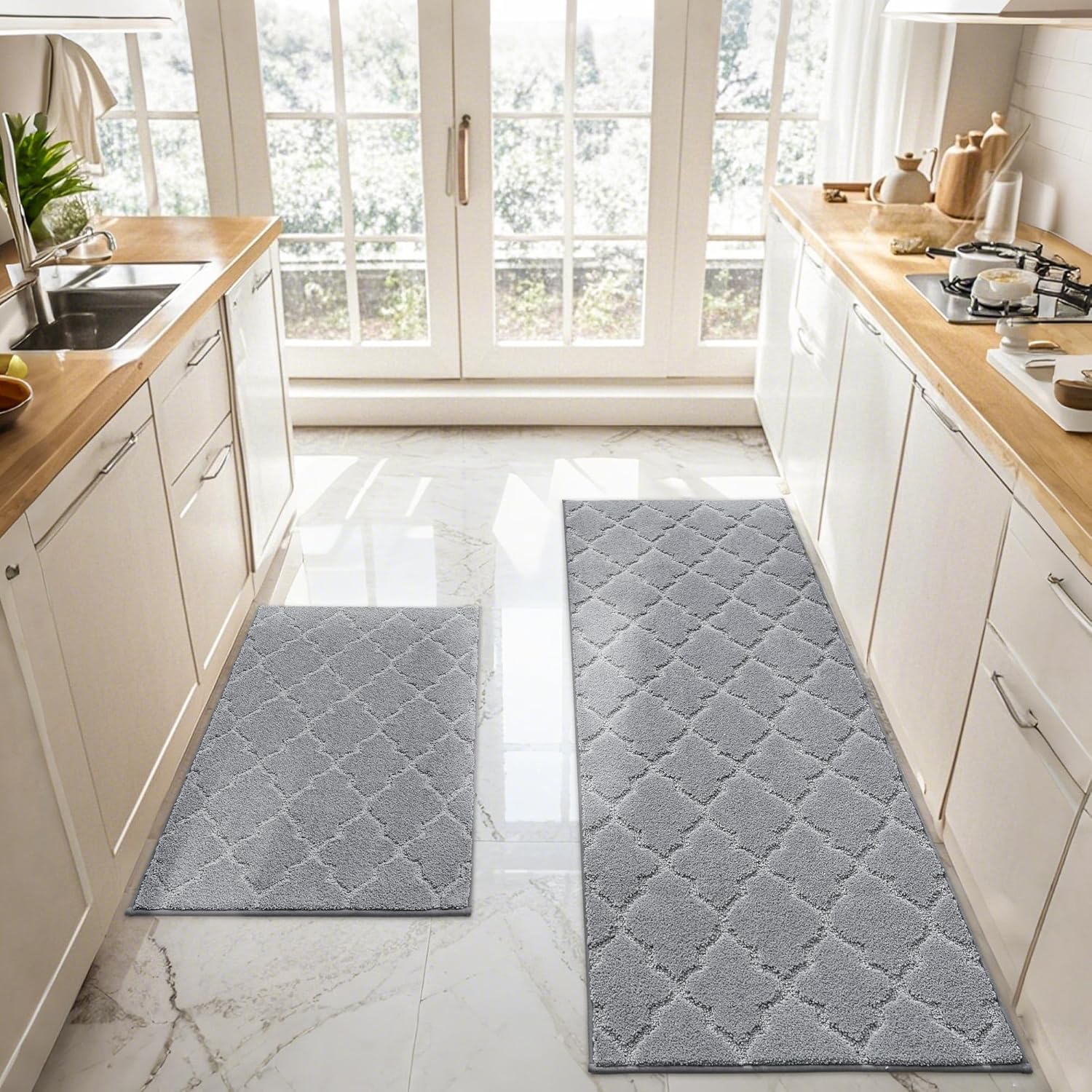 JSEI Kitchen Rugs, Non-Slip Kitchen Mats for Floor, Soft Washable Absorbent Kitchen Mats 2 Pieces, Kitchen Carpet Runner with TPR Backing, Polyester, 24”x36”+24”x60”, Light Grey
