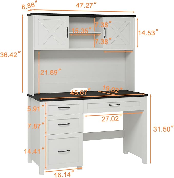 - 【Ample Storage Space】Measuring 47 inches wide and 68 inches tall, this executive desk offers plenty of space for files, computers, and printers. It features 5 sliding drawers, storage cabinets, and multiple cubbies to accommodate various storage needs for files, books, and office essentials, making it a top pick for those seeking a functional and stylish home office desk.
