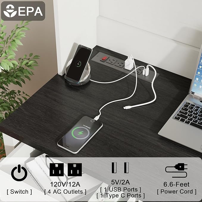 - 【Convenient Charging Station】The built-in charging hub comes with 4 outlets and 2 USB ports, allowing you to charge up to 6 devices simultaneously. A one-button on-off switch ensures safe power usage, adding an extra layer of security. This charging station is designed to accommodate phones, tablets, laptops, and other electronic devices.