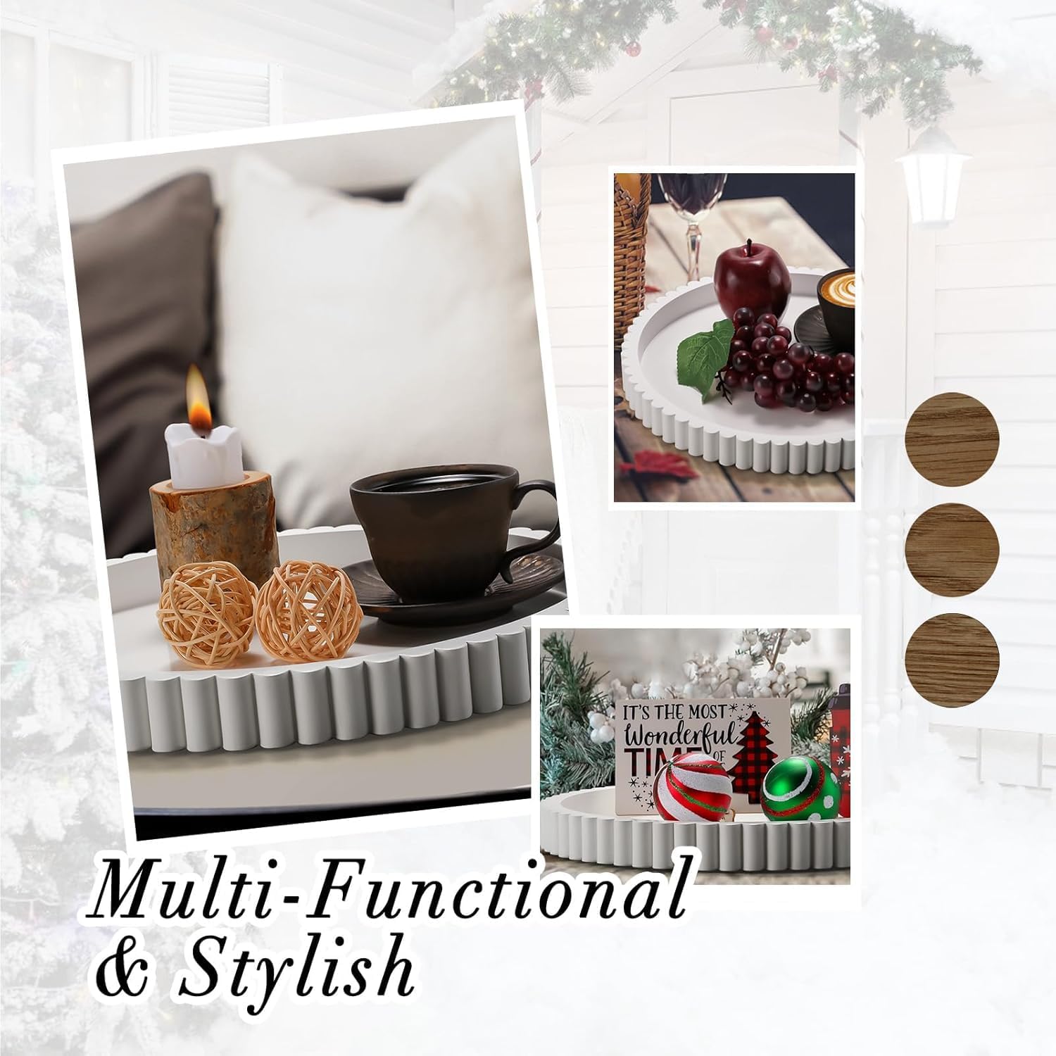 Handmade 12in Decorative Tray for Coffee Table Tray Decor, White Wooden Decorative Round Tray for for Coffee Table, Dining Room Table Entryway and Living Room Table