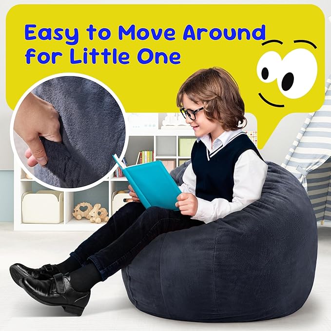 - Comfortable Bean Bag Chairs: Boys and girls alike will enjoy the comfy beanbag chairs. The bean bag cover is made of 100% skin-friendly and soft fabric, and it's filled with high-density memory foam, which is super comfortable and supportive to sit on.